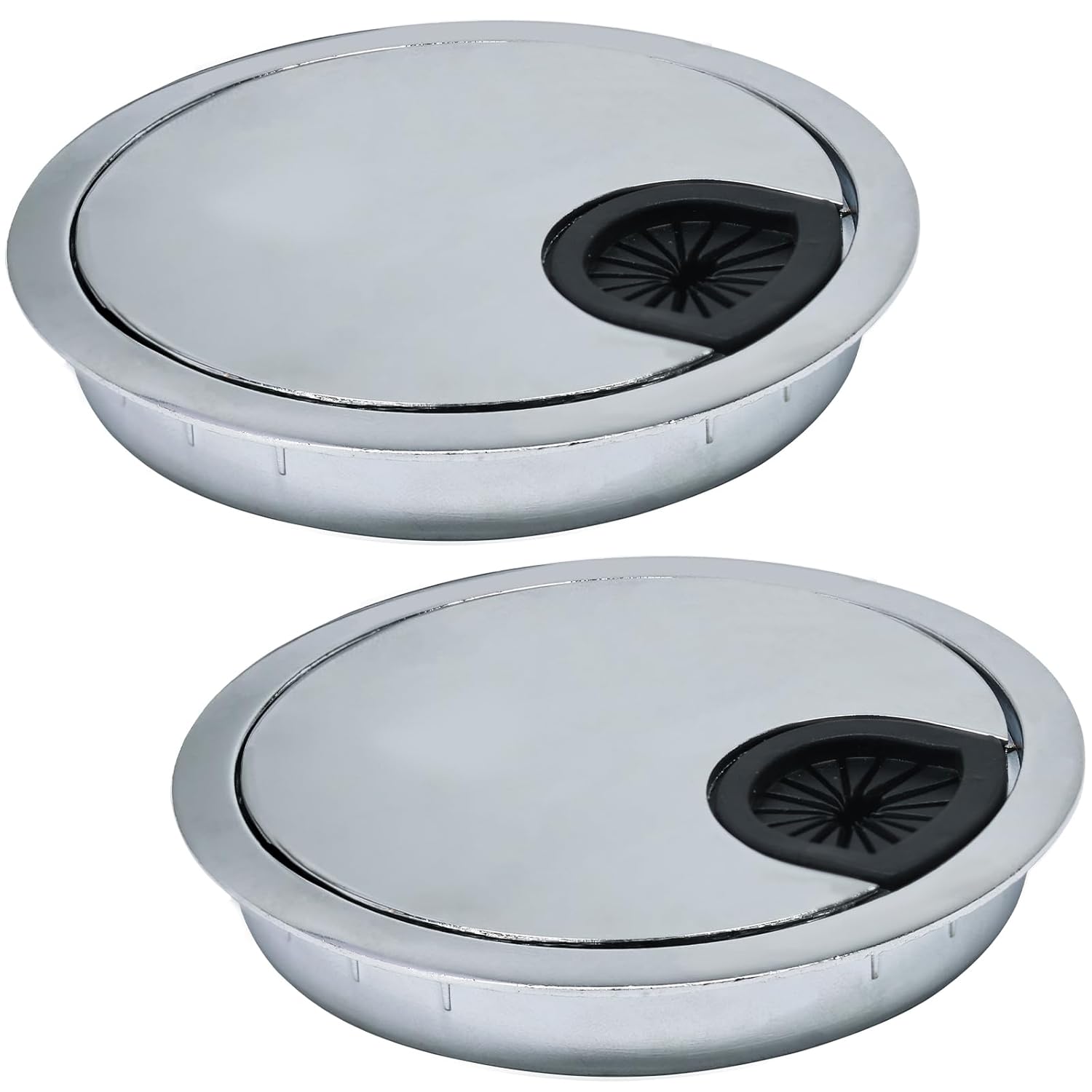 - PERFECT DESK GROMMET SET: 2 Bright Silver metal desk grommets, desk hole cover for cables 3.2 inch (80 mm) diameter, 3.52 inch (88 mm) overall diameter, 0.48 inch (12 mm) height; Manual measurement, please allowed 0.01-0.1 inch error