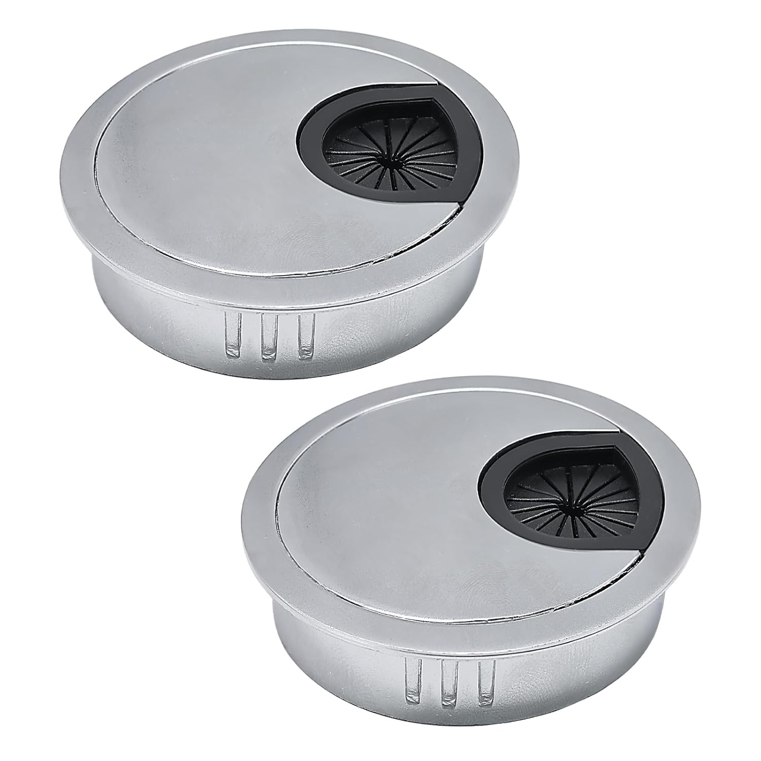 - PERFECT DESK GROMMET SET: 2 matte silver metal desk grommets, desk hole cover for cables 2.12 inch (53 mm) diameter, 2.4 inch (60 mm) overall diameter, 0.48 inch (12 mm) height; Manual measurement, please allowed 0.01-0.1 inch error