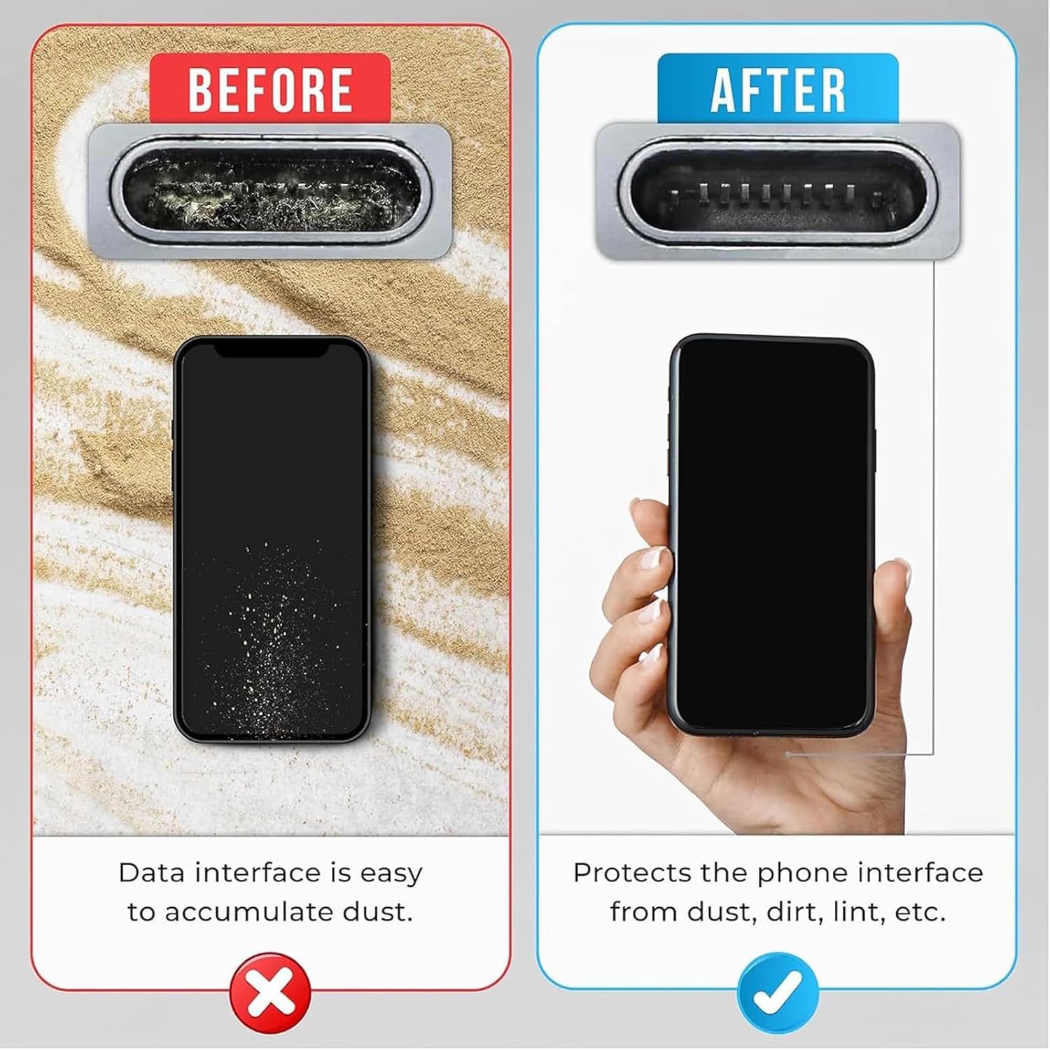 - 【Function of USB C Dust Cap】: Our USB-C Dust Plugs protect your device ports from liquids, pet hair, sand, dust, dirt, and pocket lint, helping you avoid costly repairs, charging and port issues.