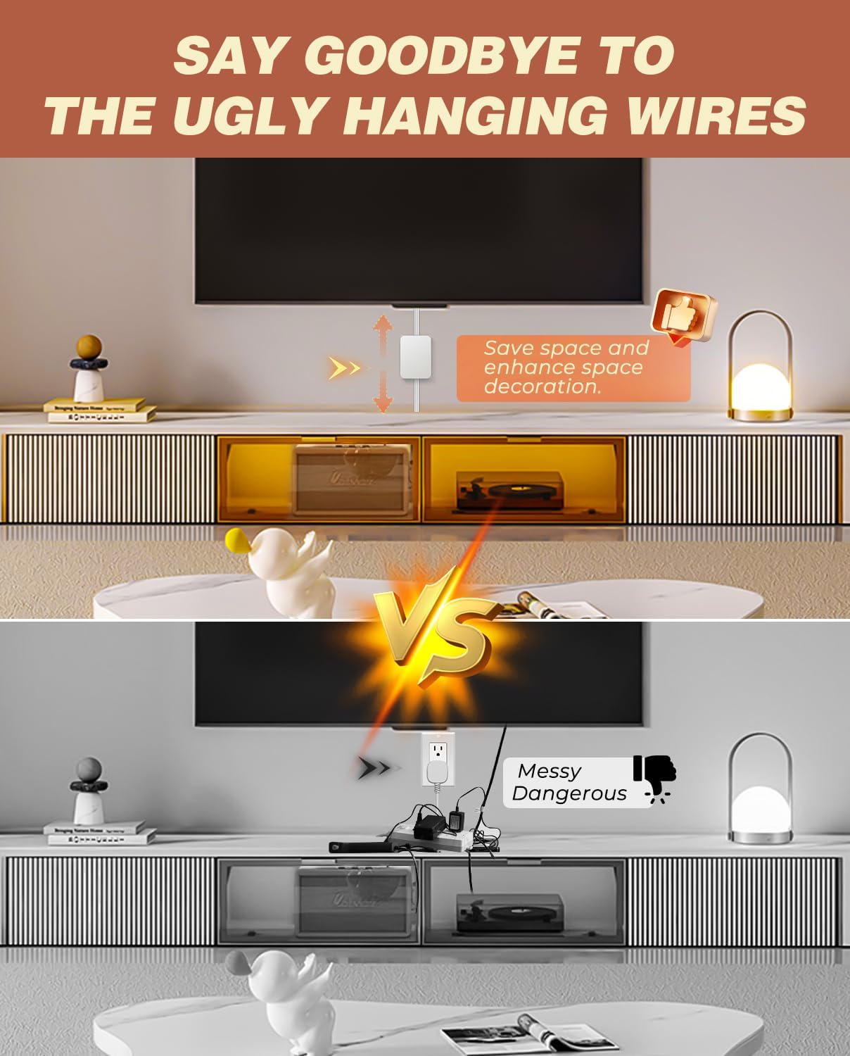 - 【SAY GOODBYE TO CLUTTERED PLUGS AND CORDS】Streamline your space with ourltra-thin electrical outlet cover. Say goodbye to clutter and hazards with our flat plug extension cord. Experience convenience and safety with our outlet cover extension cord.