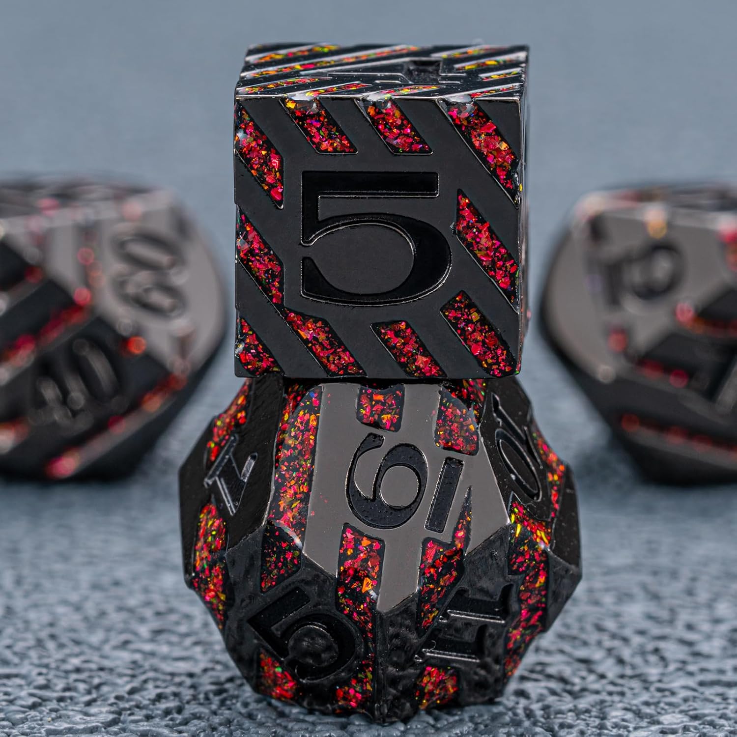 - Excellent Craftsmanship - metal dice Stripes design, the dice is having the cool engraving. All of these elements are carved on the metal dnd dice set with exquisite craftsmanship
