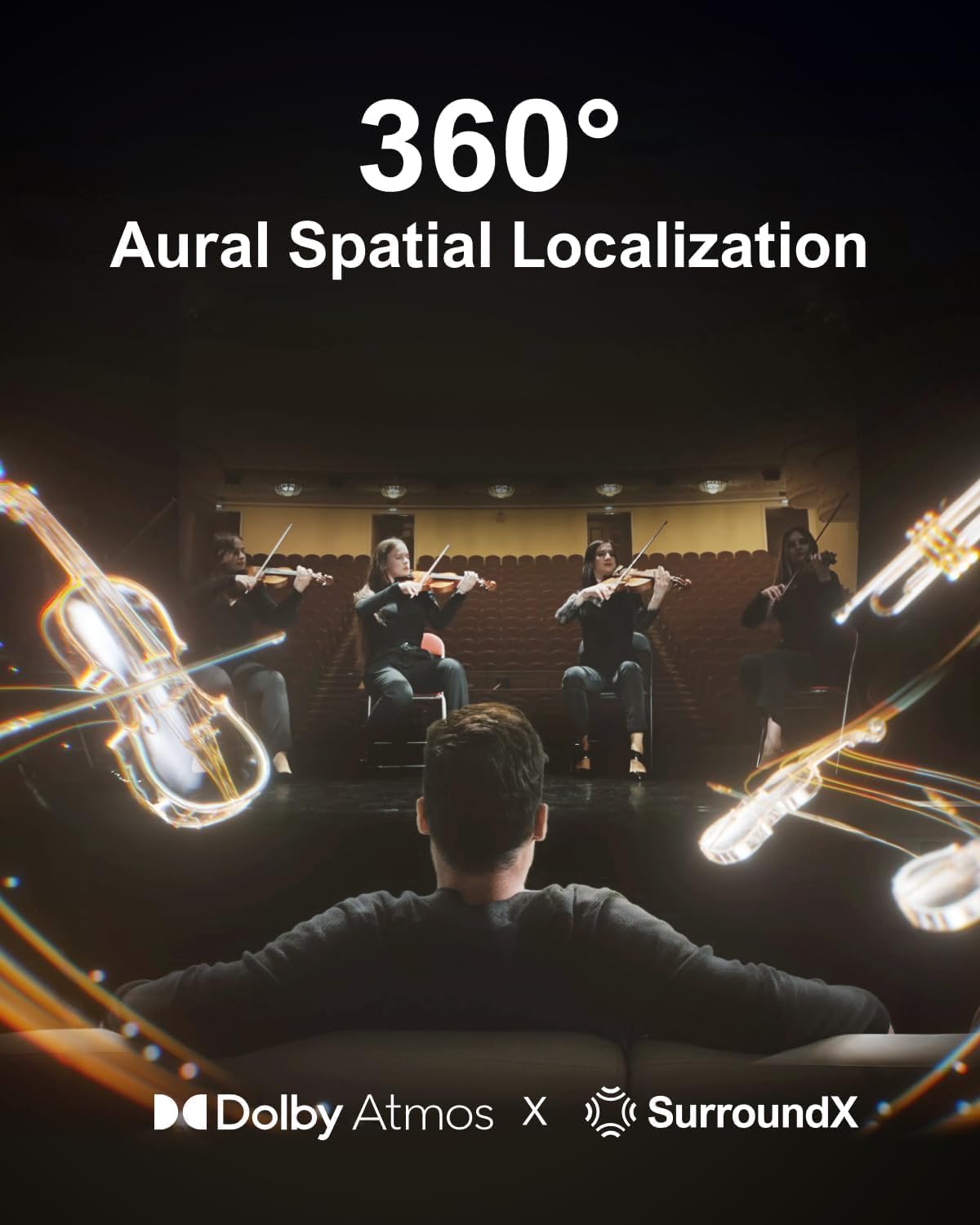 - Dolby Atmos for a True 3D Soundscape: Dolby Atmos adapts sound dynamically, using spatial algorithms to place audio around you. Enjoy full 360° immersion whether you're watching movies or streaming shows.