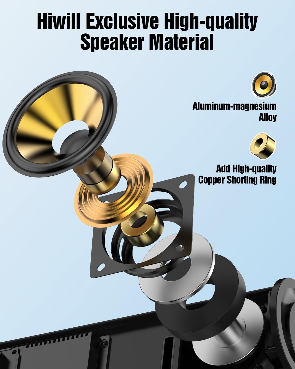 - Creating Exceptional Sound with High-Quality Materials : Delivers exceptional audio through superior craftsmanship and premium materials. Featuring high-end aluminum-magnesium alloy diaphragms, the system ensures optimal sound quality with lightweight design, excellent conductivity, and high rigidity. Each driver is enhanced with the copper shorting ring to reduce interference and improve signal clarity, creating a truly immersive, high-quality audio experience.