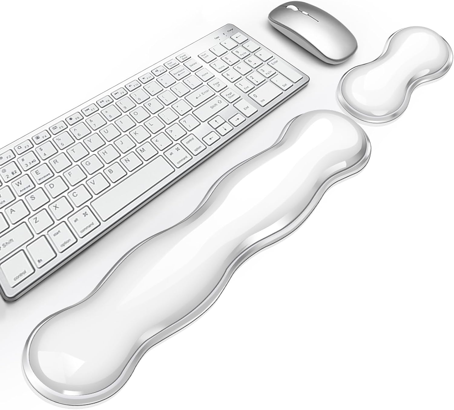 Gel Keyboard Wrist Rest, Cute Wrist Support and Arm Support Keyboard Rest for Keyboard and Mouse Typing Pain Relief,Suitable for Office/Computer/Laptop/Gaming(Transparent White Set )