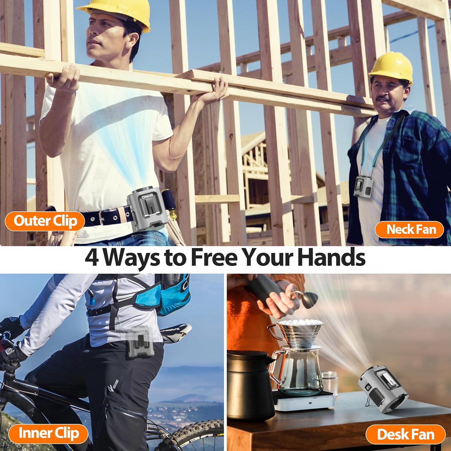 - Hands-Free Cooling: COMLIFE Portable Waist Fan offers multiple functions as a waist clip fan, neck fan, desktop fan, and handheld fan, fully liberating your hands. With outer and inner clip options, you can wear it comfortably as a belt fan or undershirt fanโperfect for on-the-go cooling