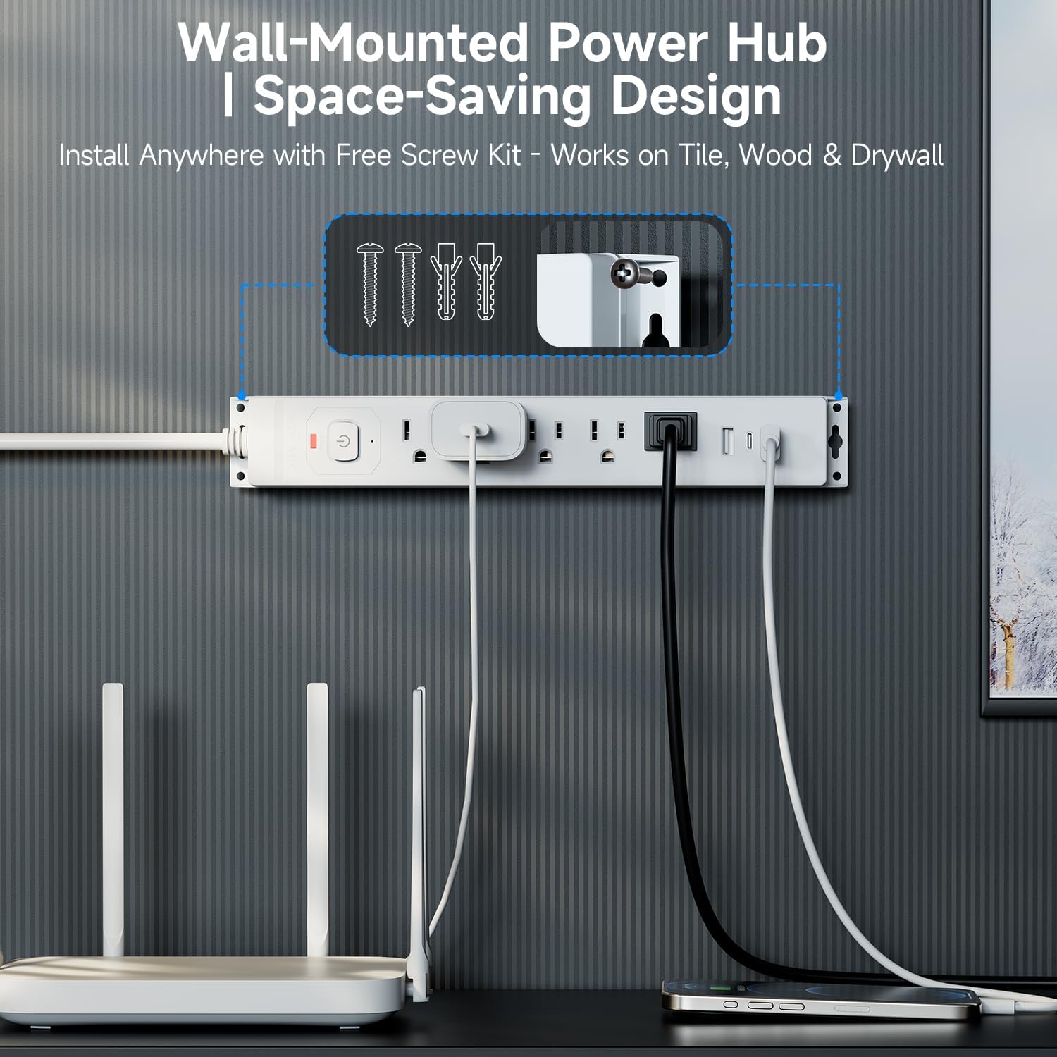 - Special Feature : Wall mountable design (screws included); 5 widely-spaced AC outlets with 3 USB charging ports