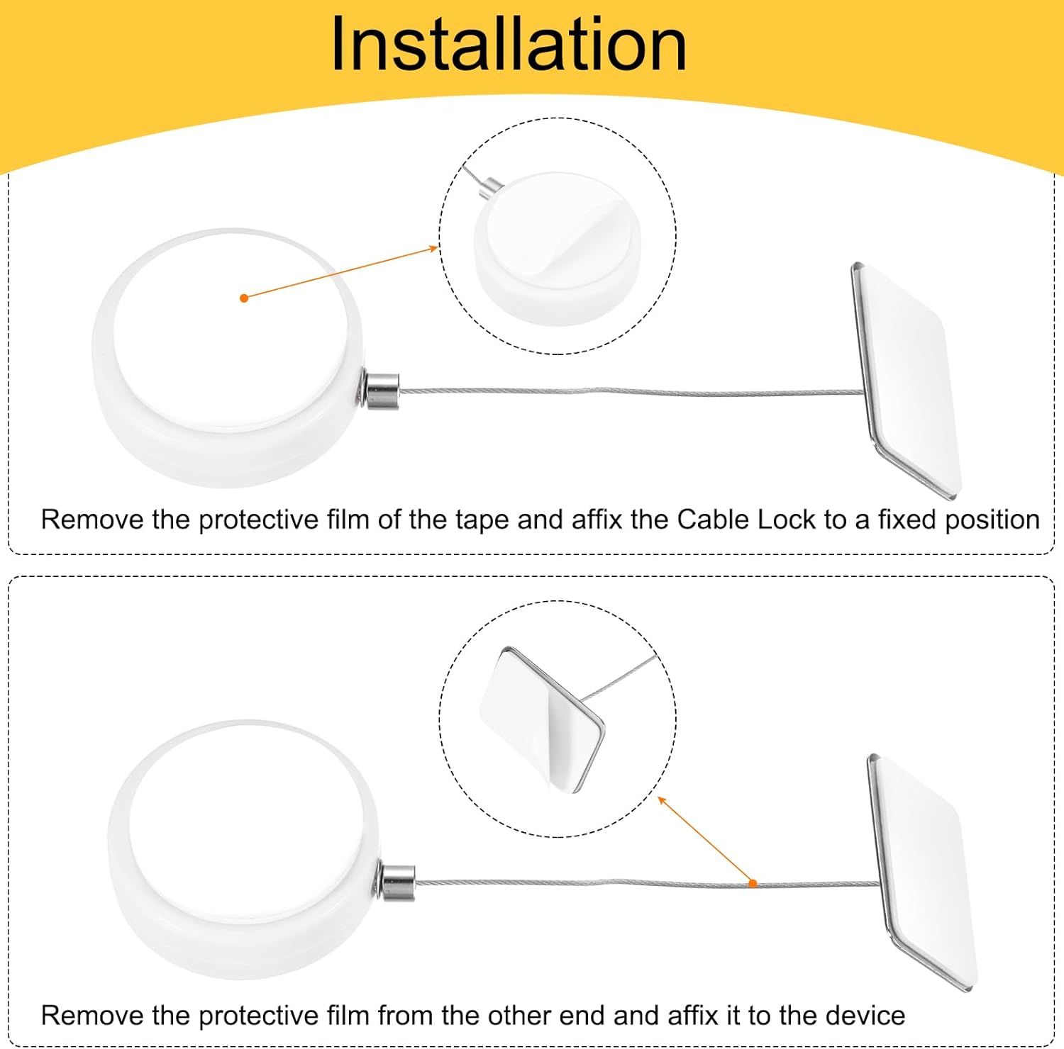 - This Retractable Cable Lock with Adhesive Patch features a retractable cable for easy length adjustment, with adhesive patches on both ends used to securely attach the device to the desktop and other surfaces. Mainly used in offices, libraries, cafes, etc., it can fix one's own mobile devices such as laptops and phones on the desk to prevent theft.