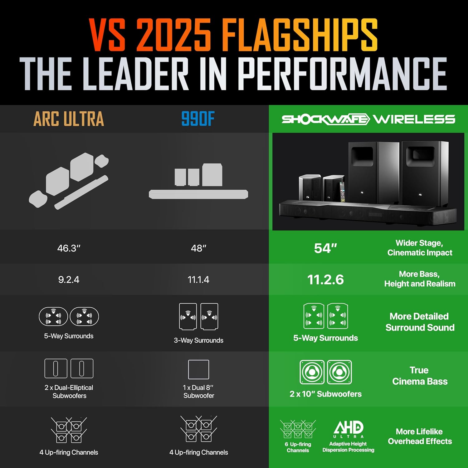 - ✅ The only system with 6 dedicated height channels, it weaves a vivid overhead soundscape using proprietary Adaptive Height Dispersion (AHD) processing.