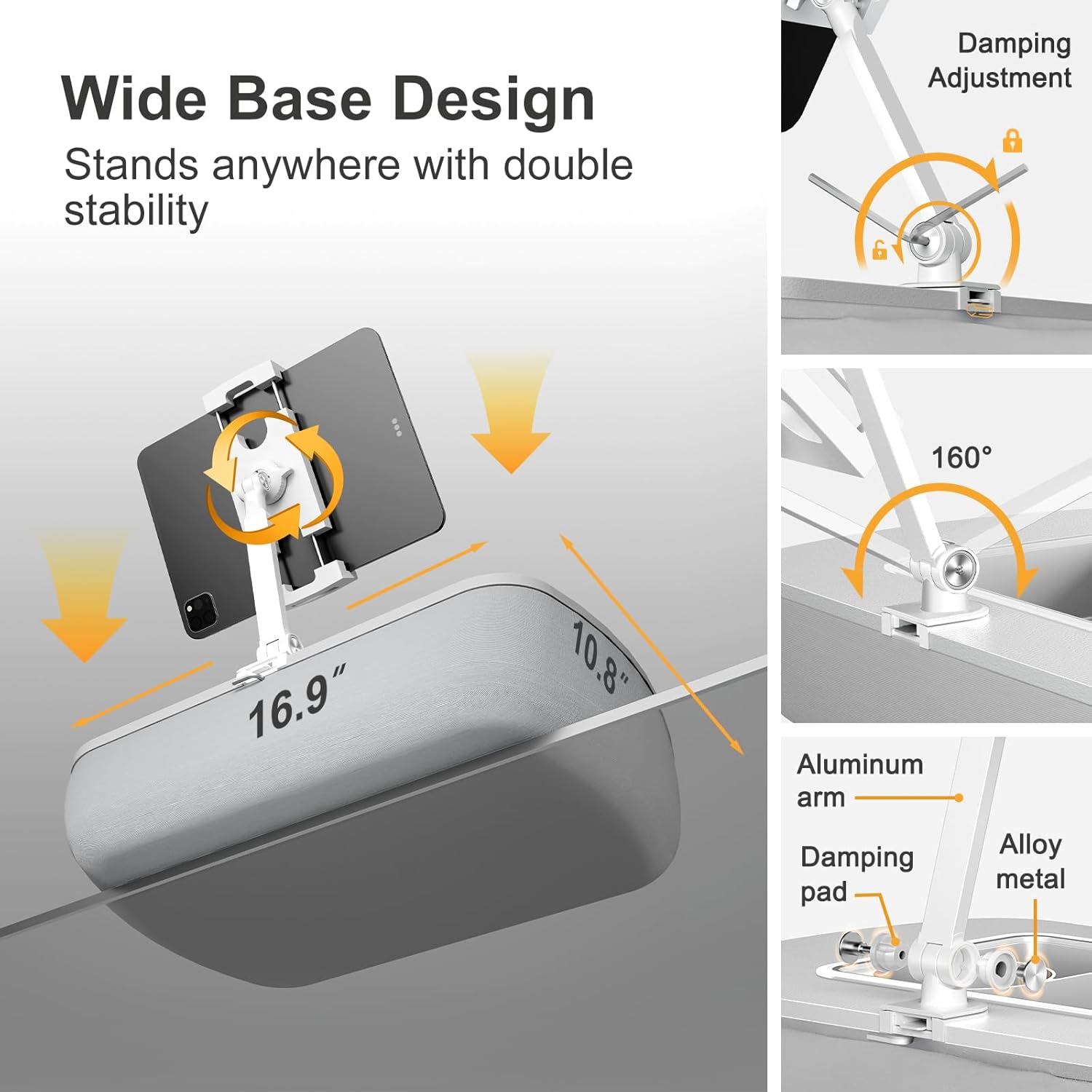- 【Wide Compatibility】 The adjustable clip supports devices from 4.7 to 9.8 inches, accommodating 4.7-13 inch Kindle, iPad, Tablet, iPhone, and Portable Monitors.