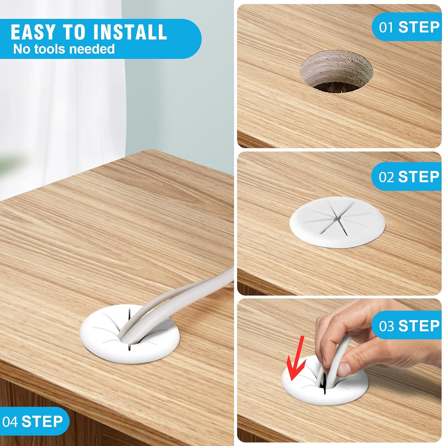 - UPGRADED CABLE MANAGEMENT -- The unique star-shaped rubber center effectively reduces friction, and minimizes cable wear from rough desk edges. Cables pass through smoothly without damage, and the flexible opening ensures a snug fit for multiple cables while keeping your workspace tidy.