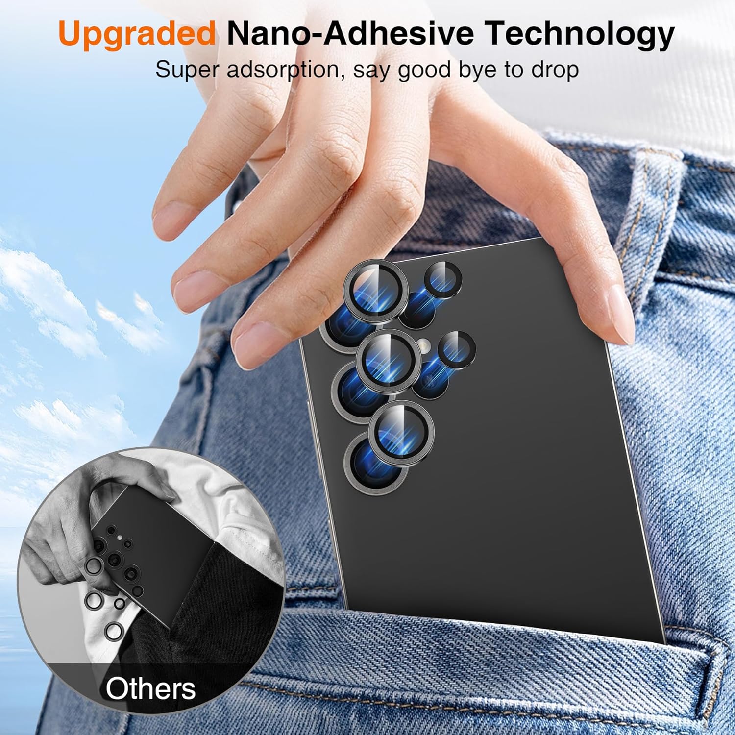 - Upgraded Nano-Adhesive Technology: The Samsung Galaxy S25 Ultra camera protector adopts the newest developed flexible adsorption technology to protect camera from all angle, dust free and waterproof, fitting tightly does not easy to fall off. Using removal tool if you want change, donโt worry about residual glue and it isnโt damage the camera.