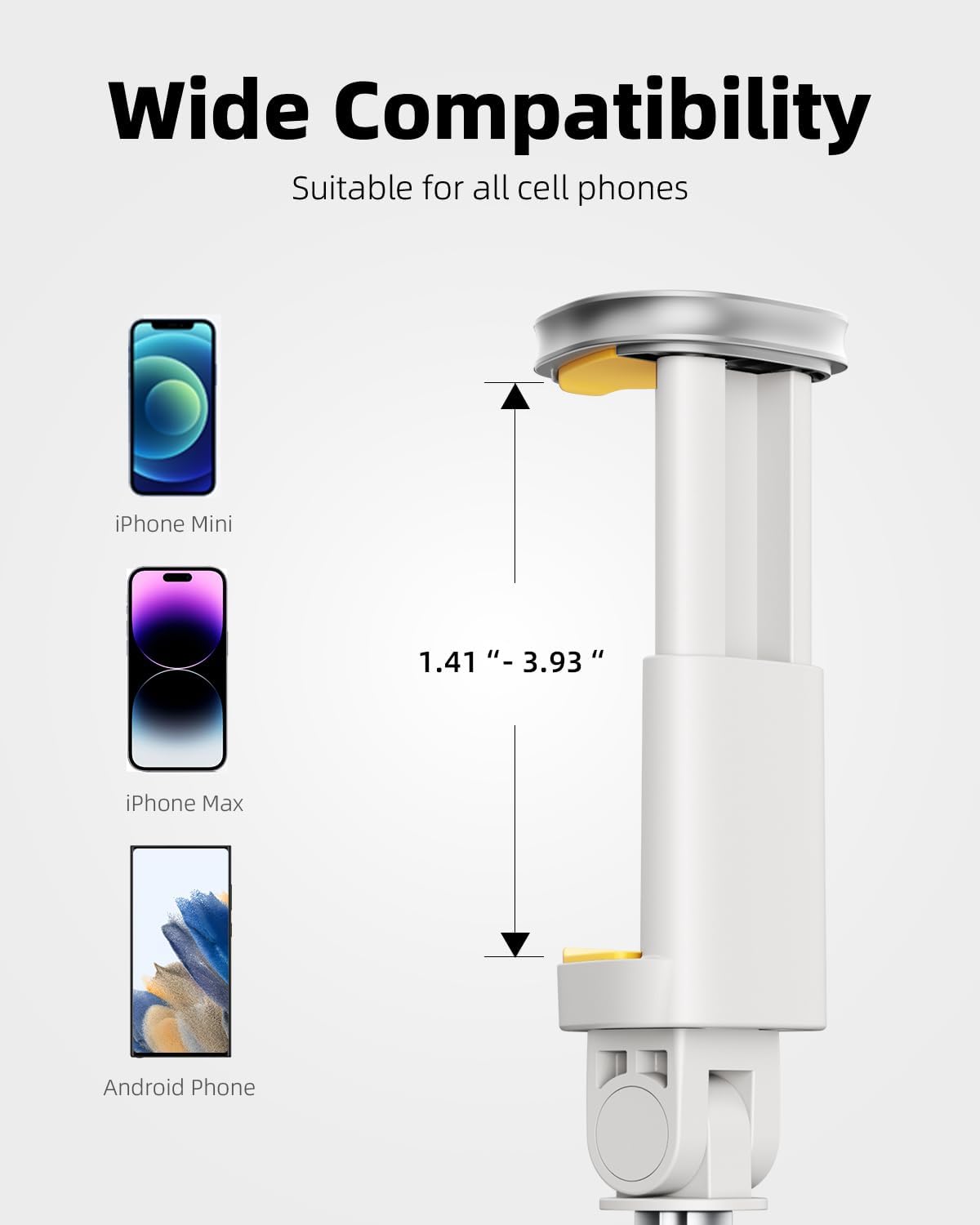 - Wide Compatibility: TODI selfie stick tripod securely holds smartphones with widths from 1.41" to 3.93", making it ideal for selfies, vlogging, group photos, and content creation.