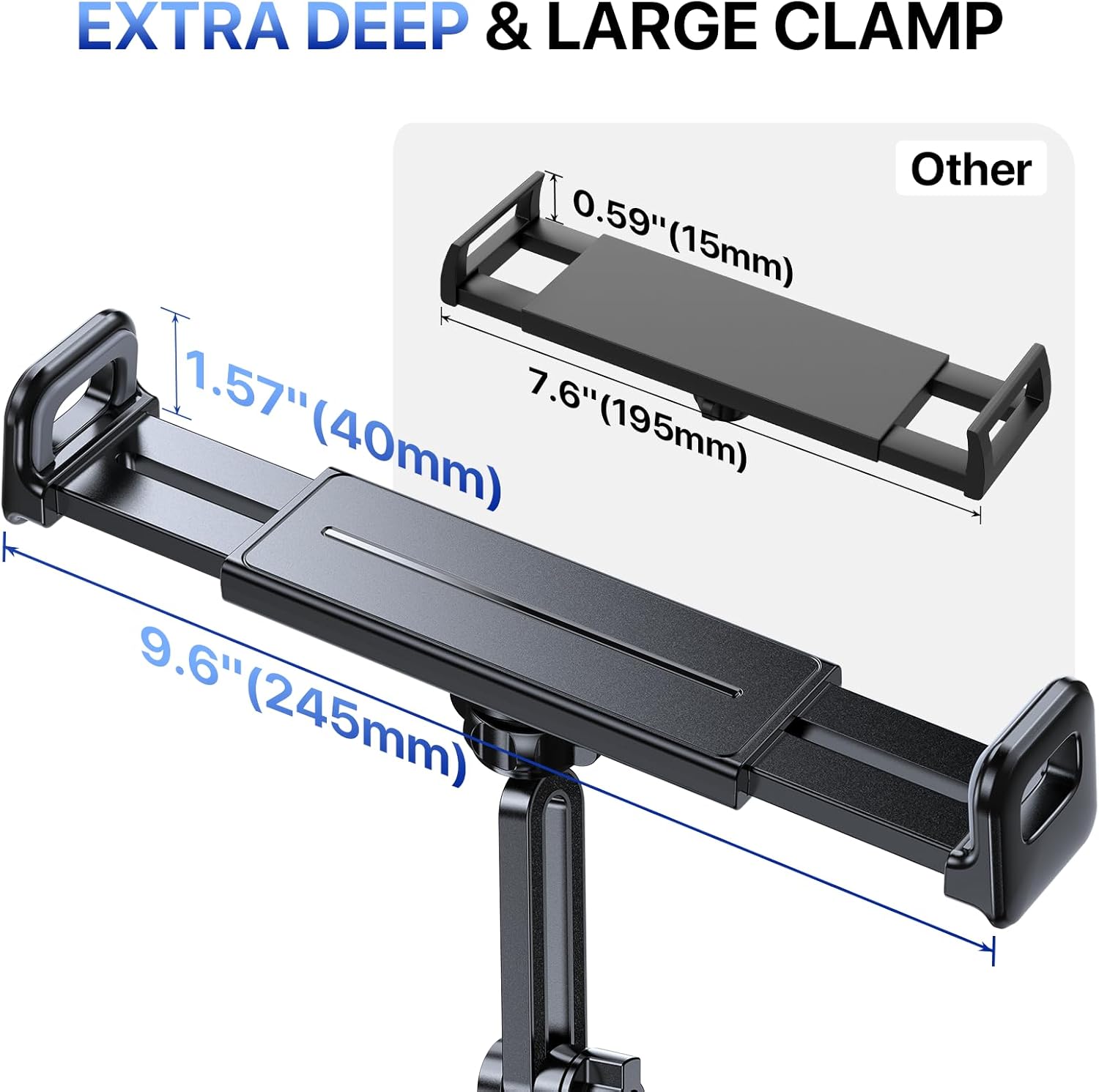 - Wide Compatible: The stretchable side clamp (1.57" thickness) of this tablet holder for car can be extended from 5.12" to 9.6", fits for all 6.1" -12.9" smartphones and tablets with or without case, such as compatible with iPad Pro 12.9/11/10.5/9.7, iPad Air 5/4/3/2, iPad Mini 6/5/4/3/2/1, iPhone 15/15 Pro/15 Pro Max, iPhone 14/Pro/Max, iPhone 13/Pro/Max, iPhone 12/11/XS/XS Max/XR/X/SE/8 Plus/8/7/7 Plus/6 Plus/6, Samsung Galaxy Tab/ Galaxy Note/ Galaxy S/Galaxy Z Fold 4 3, Amazon Fire HD 10/8/7/6 and etc.