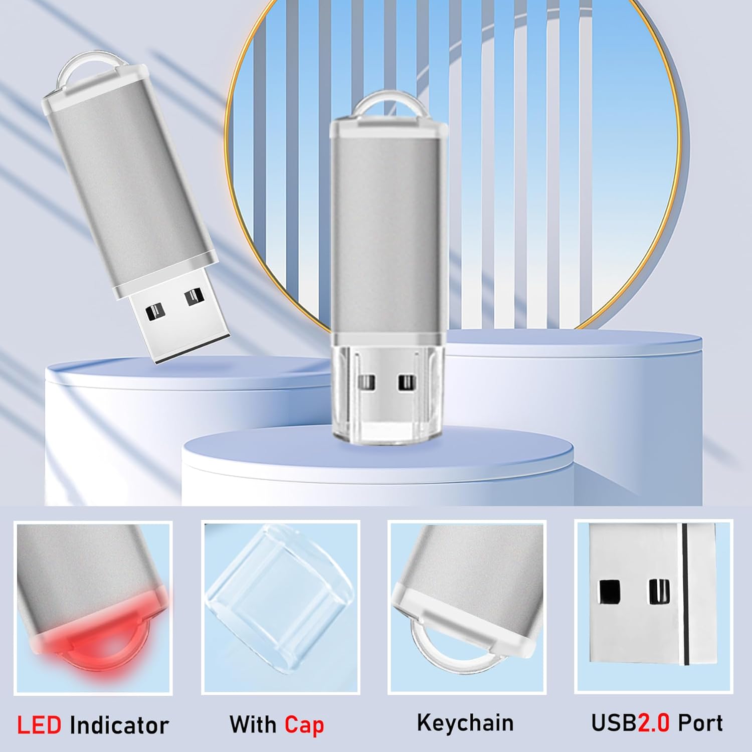 - Rugged And Practical Design: 8GB USB thumb drive with waterproof label to help you identify different contents. Combined metal and plastic casing of USB storage flash drives 8 GB and cover prevents damage to the USB plug, LED indicator lights, loop design easy to hang on your keychain to prevent loss