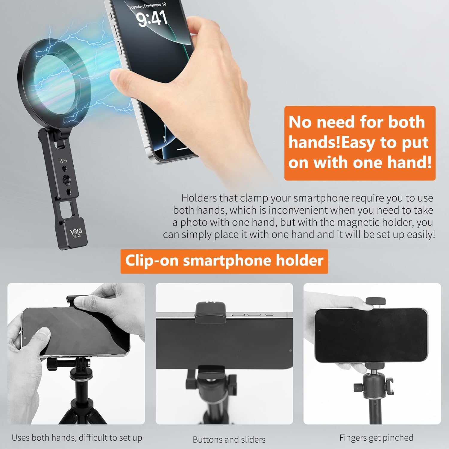 VRIG Magnetic Phone Holder Compatible with Magsafe for iPhone 16 15 14 13 12 Pro Max Plus Series,Aluminum Tripod Mount Adapter with 1/4”-20 & Cold Shoe for Video Recording