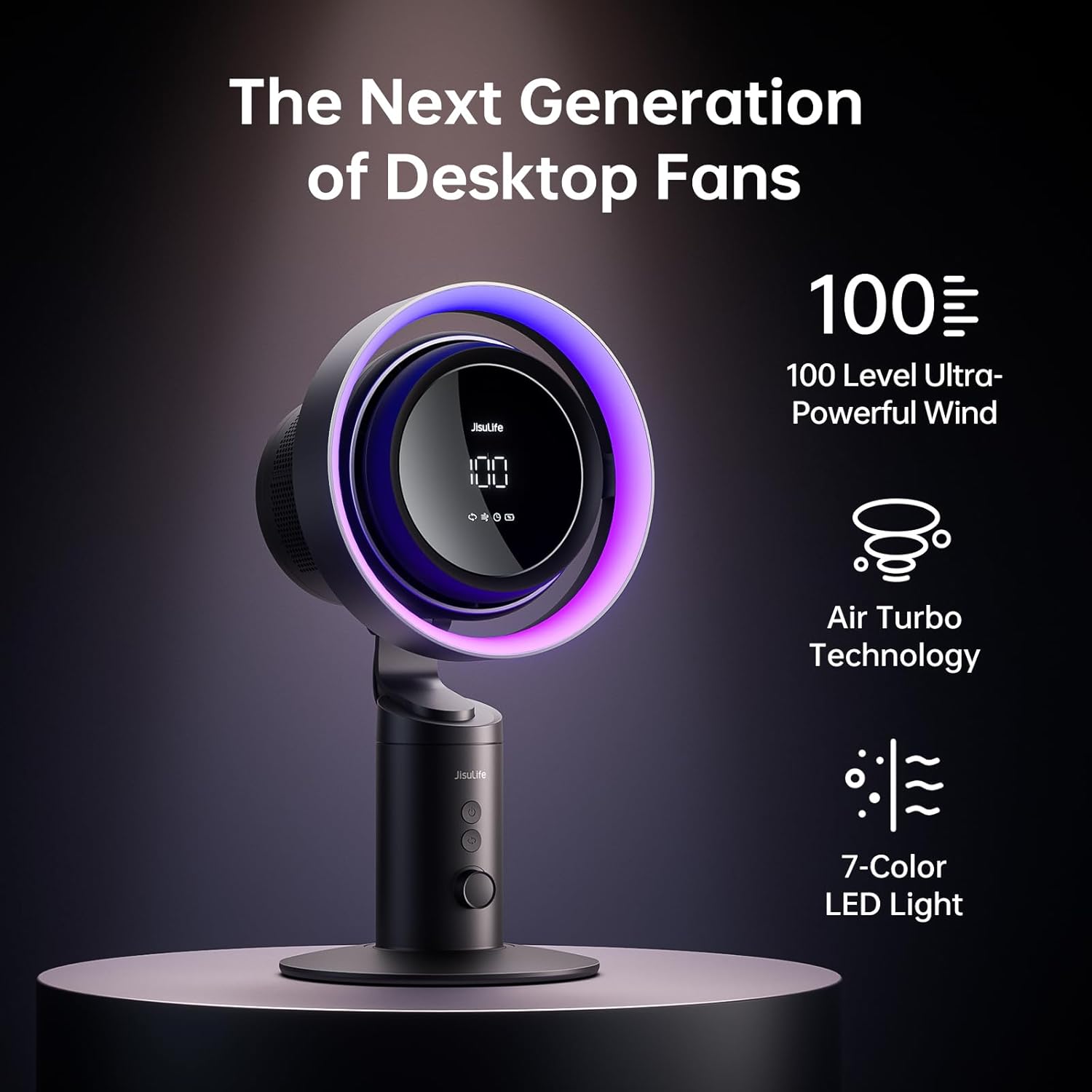 - 3-in-1 Turbo Desktop Fan & Ambient Light: Combining a powerful turbo fan with customizable RGB mood lighting, its modern design is the perfect upgrade for enhancing the style and comfort of your desk, office, or bedroom