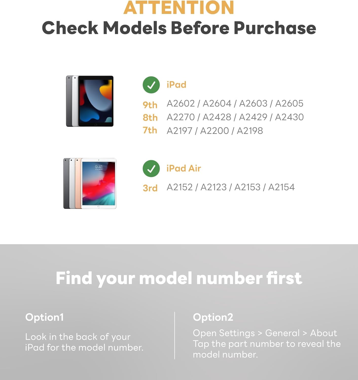 - 📘【COMPATIBLE iPAD MODELS】- Apple iPad 7/8/9th 10.2", Air 3rd Generation 10.5 inch. Please confirm whether your iPad is compatible with eiP Keyboard case before you place orders. ❗【Find Your Model】: Setting → General → About → Model Name and number