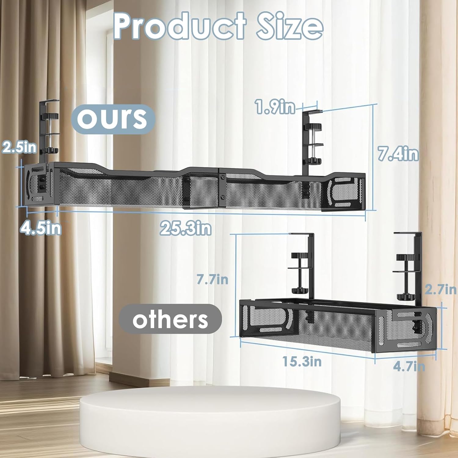 - 【25'' Large Size】The 25'' cable management under desk provides enough space for all your cables. Desk cable management can withstand a weight of approximately 15 lbs. This desk organizer perfect for your standing desk and home.