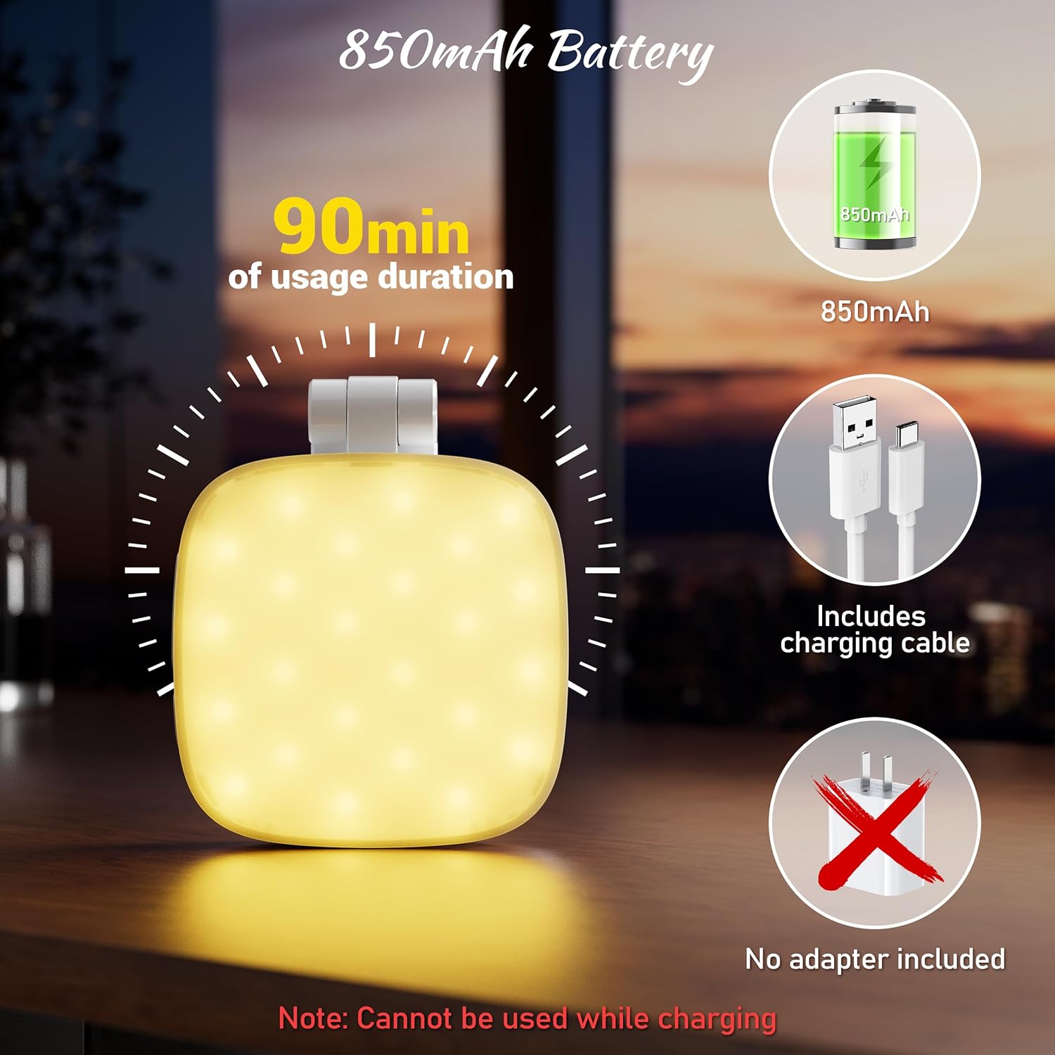 - Ultra-long Battery Life: 850mAh rechargeable battery, 90 minutes of use at 100% brightness, iphone light ideal for filming,Live Streaming, videography and content creation, with additional Type-C charging cable (adapter not included)