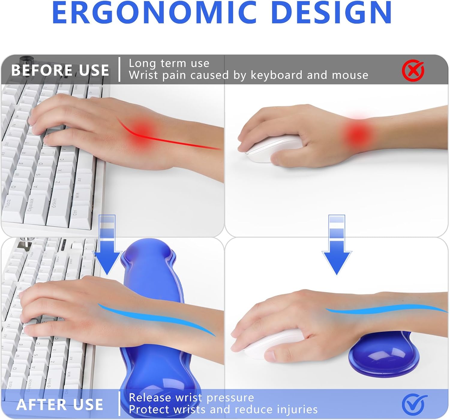 - 【Comfortable Gel Wrist Rest Set】Premium crystal gel offers soft, cool support, contouring to your keyboard. This keyboard and mouse wrist rest reduces strain, minimizes friction, and ensures lasting comfort