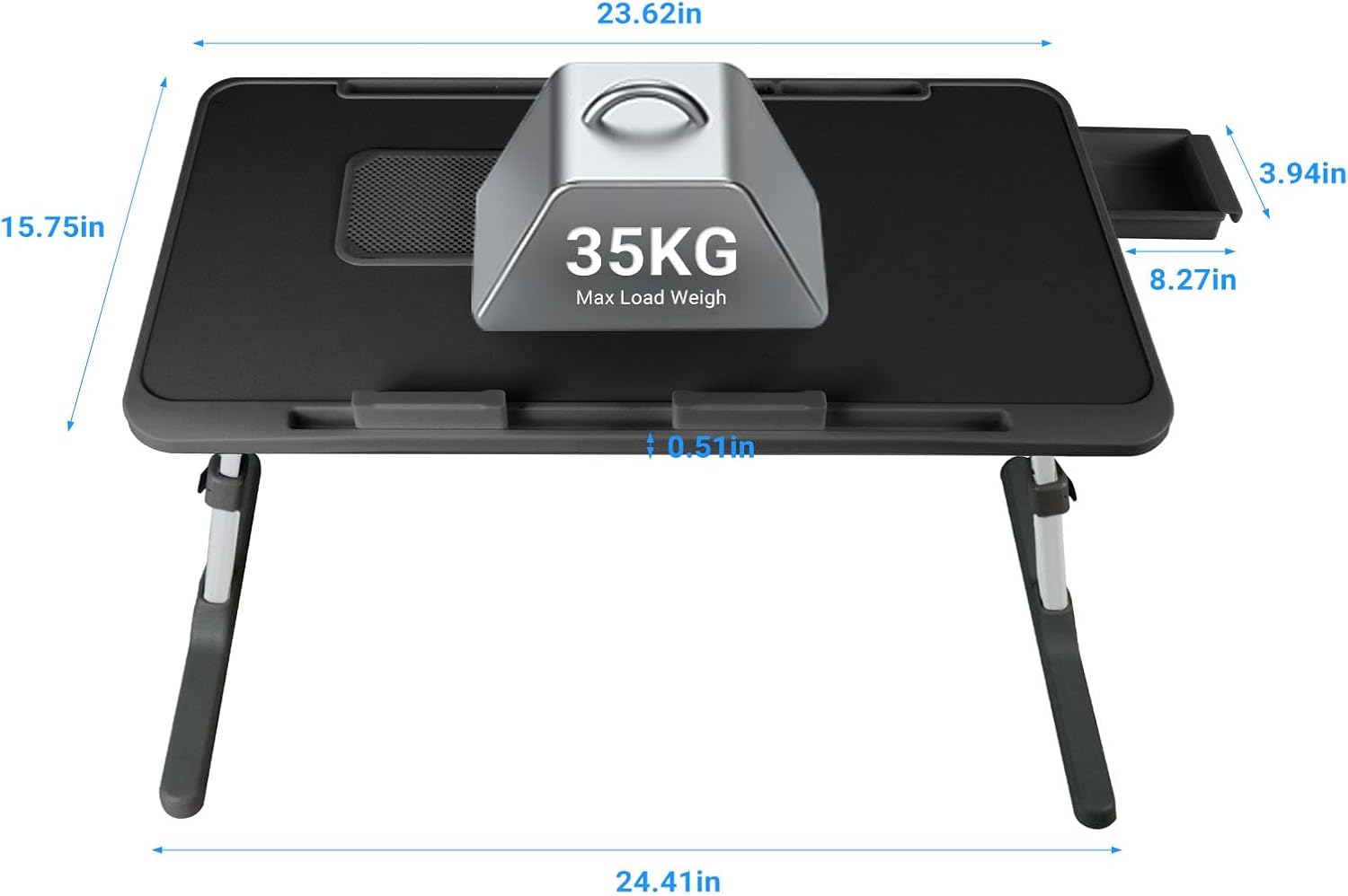 - 【🔍Multipurpose and Space-Efficient】Ideal for a range of activities — from work and meals to relaxation and recreation — this foldable laptop table is a compact and versatile solution. When not in use, it easily folds to a slim 2.7 inches, perfect for sliding under a bed or couch. It's a practical addition to any home, offering a multifunctional space for everyday needs.