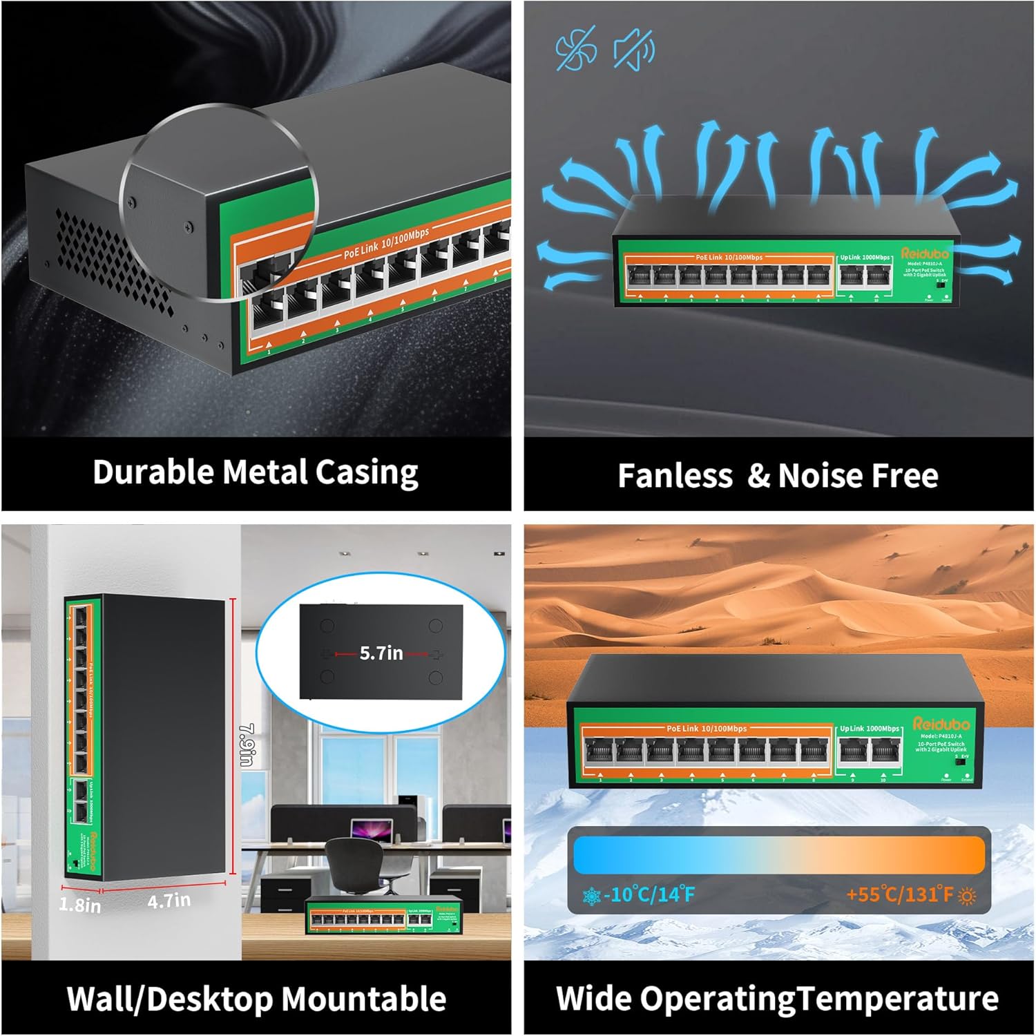 - 【Durable & Wide Applications】Compact metal housing with fanless design for silent operation and efficient heat dissipation. Ideal for IP surveillance, wireless networks, offices, and homes.We offer a 1-year warranty and lifetime tech support.