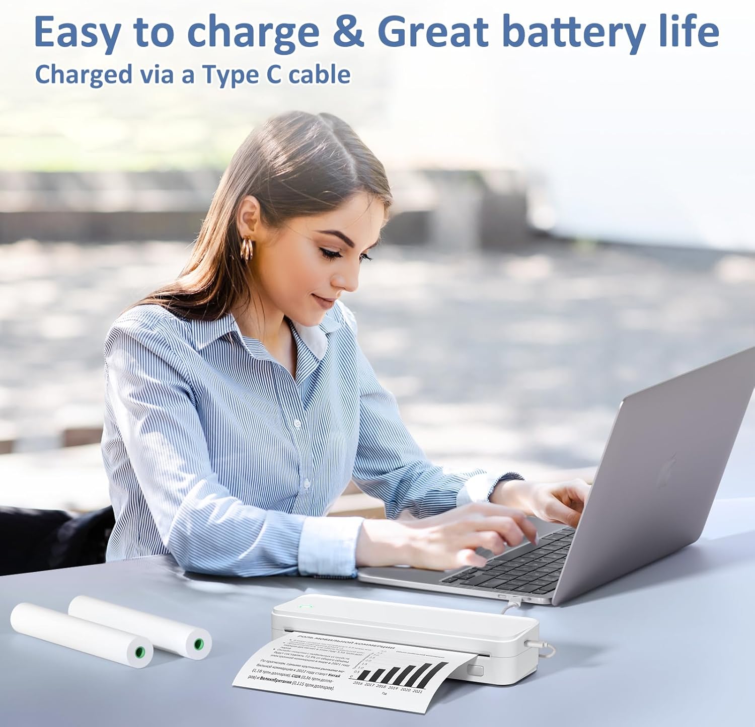 - Ultra-Portable Design - Weighing just 1.75lb and measuring 1.7in thick, the Gloryang portable printer is incredibly lightweight and compact. Perfect for on-the-go printing during travels, work, or university, it easily fits into backpacks or briefcases. Ideal for emergency scenarios, contracts, office documents, and more.