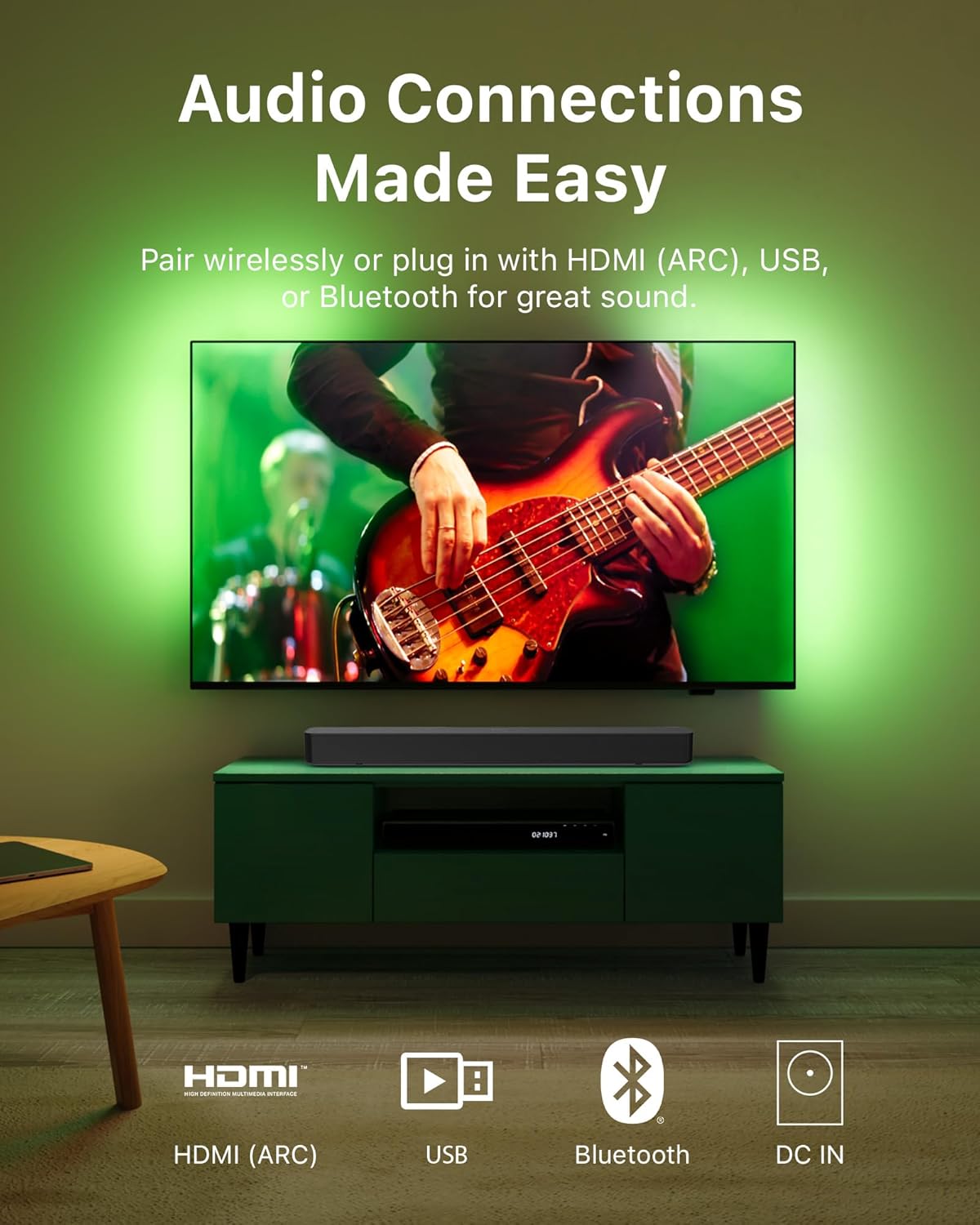- Easy, seamless connections: Expand the possibilities of sound with this soundbar. With versatile HDMI-ARC connectivity, sync up to other devices seamlessly without the clutter of multiple cables.