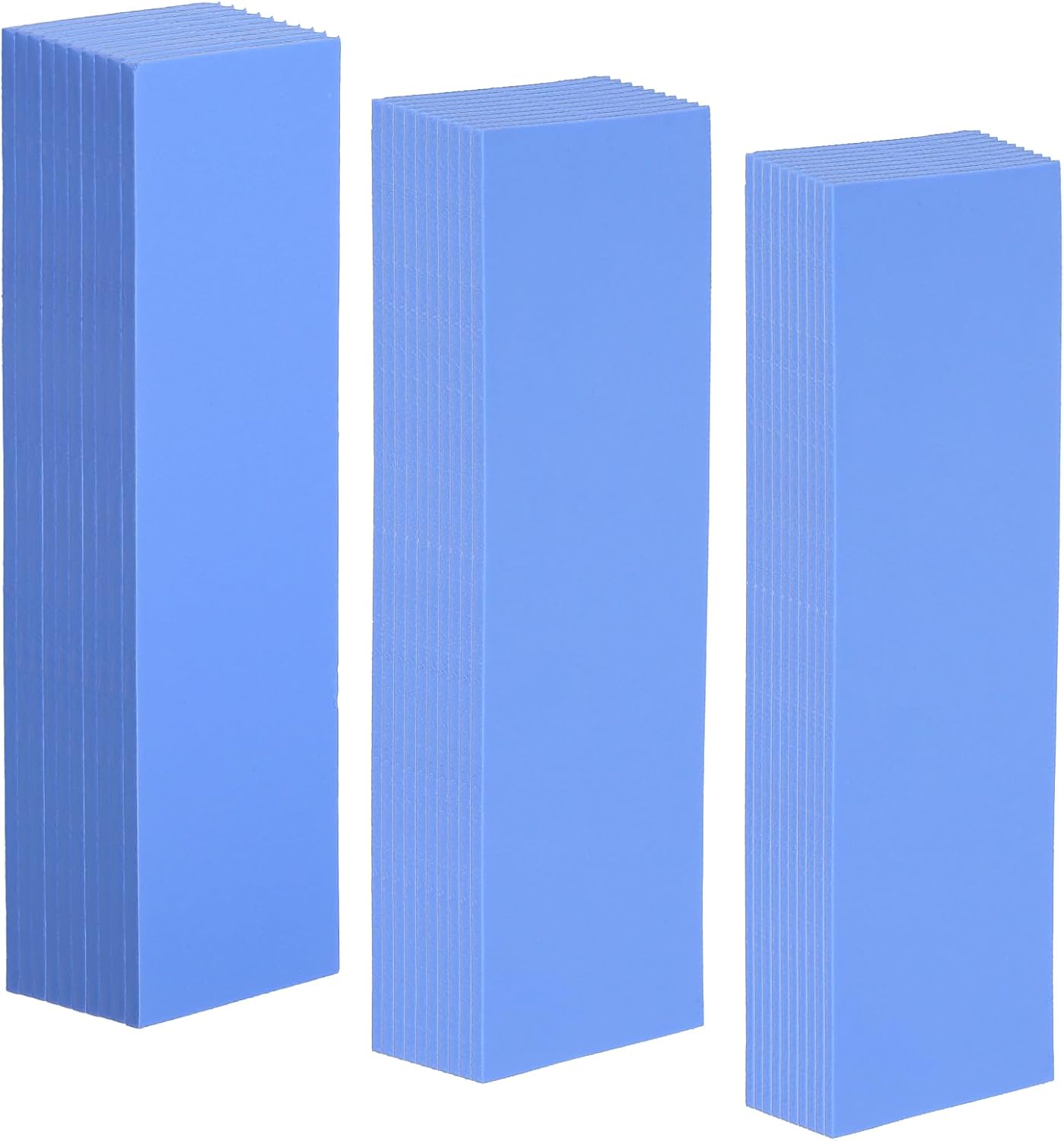 - Abundant Quantity: 30 pieces of blue thermal pads are included. There are three thicknesses to choose from - 0.5mm, 1mm and 1.5mm, 10 pieces of each size (20x67x0.5mm, 20x67x1.0mm, 20x67x1.5mm). This variety is enough to meet various needs.