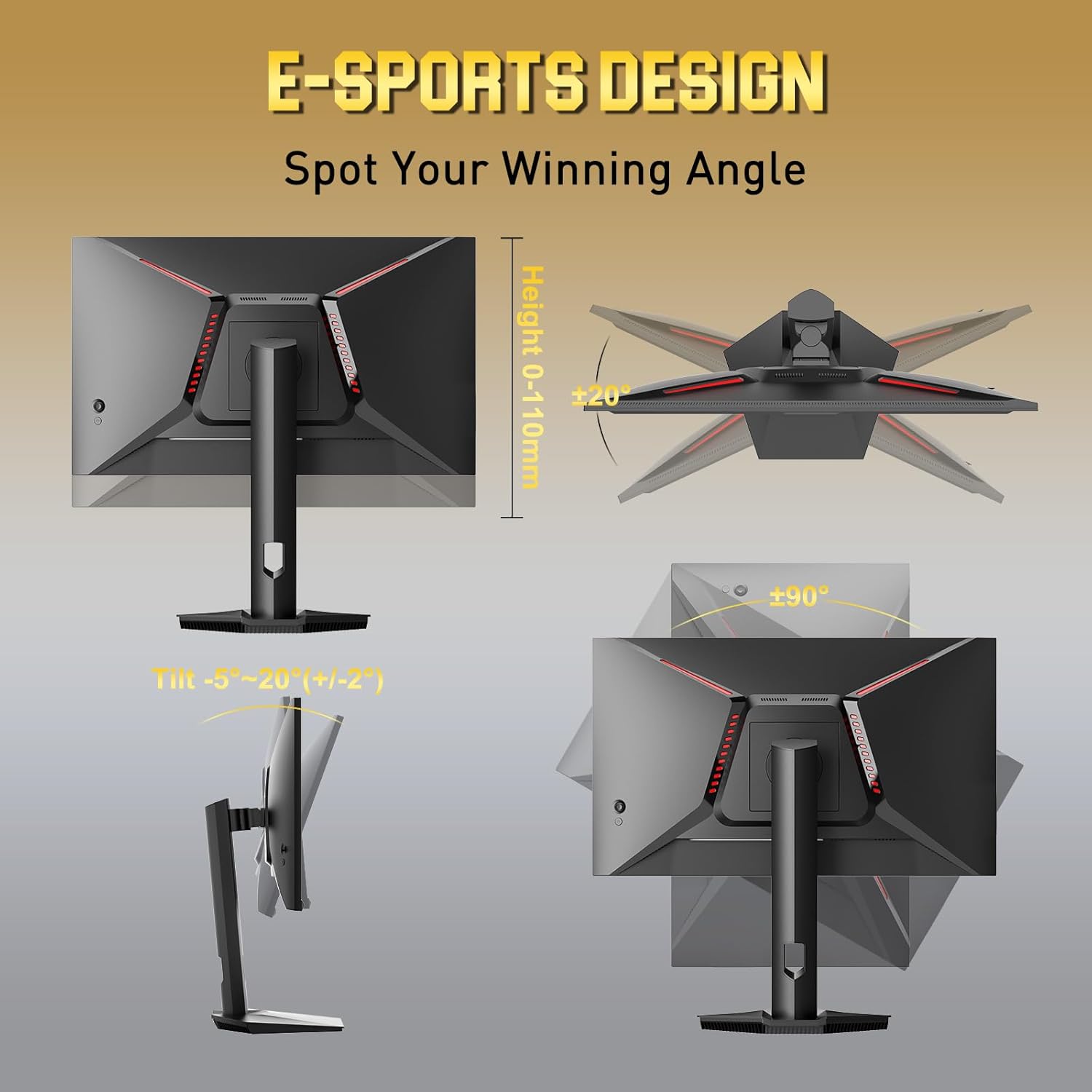 - Exllenct Image and Ergonomic Design - 130%sRGB color gamut, 350Nits brightness, HDR; Anti-fcker, low blue light; 178° viewing angle; Pivot/Swivel/Height: -90°~+90°/L20°~R20°/0~110mm; Tilt: -5°~20°(+/-2°)