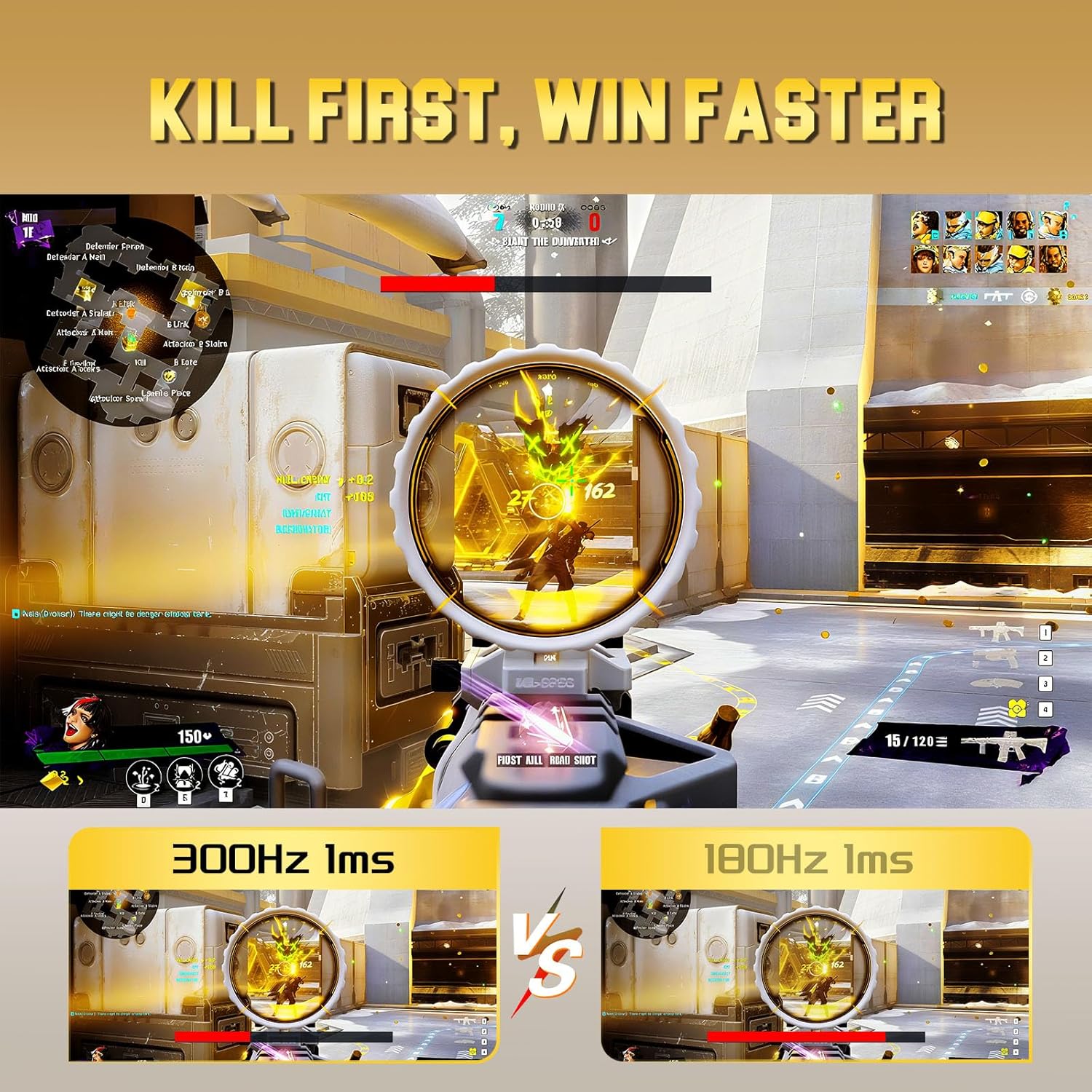 - Soomth Gaming - 300Hz refresh rate, fast IPS panel, FreeSync technology, 1ms OD/MPRT response time; CrossHair /Timer /RTS /FPS /RACING game assistants