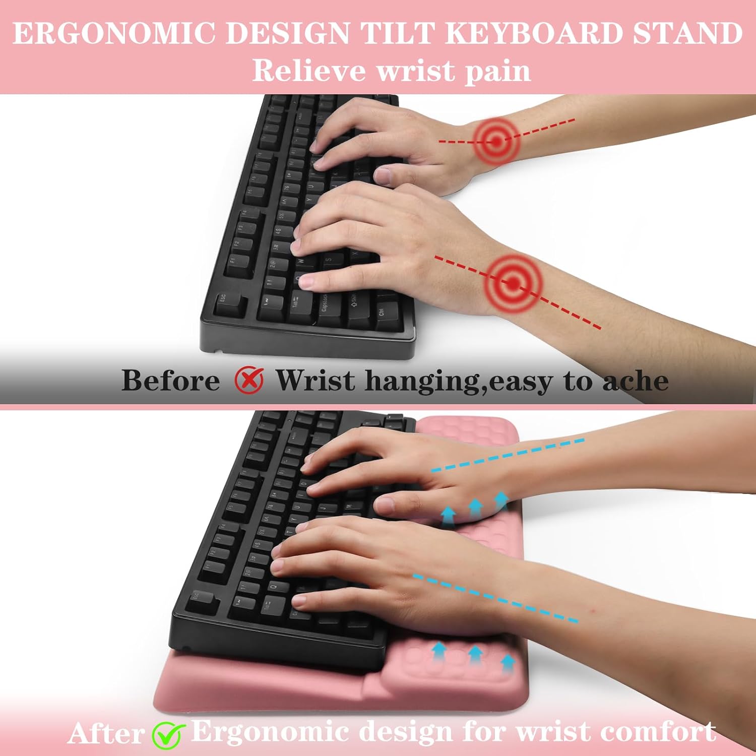 Computer Keyboard Stand Pad with Wrist Rest, Ergonomic Comfy Tilted Keyboard Stand Riser Holder Pad for Office Home (Pink)