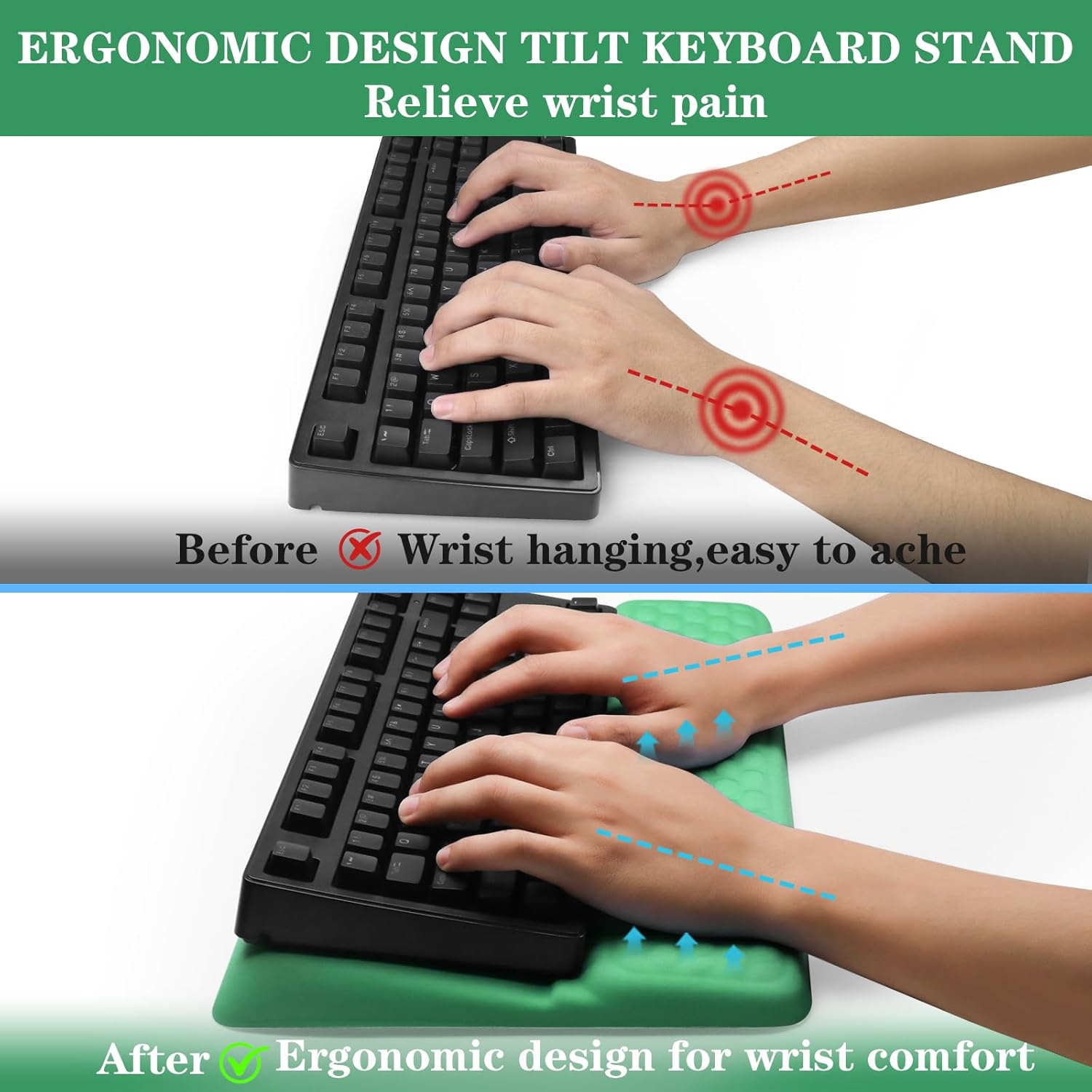 Computer Keyboard Stand Pad with Wrist Rest, Ergonomic Comfy Tilted Keyboard Stand Riser Holder Pad for Office Home (Green)