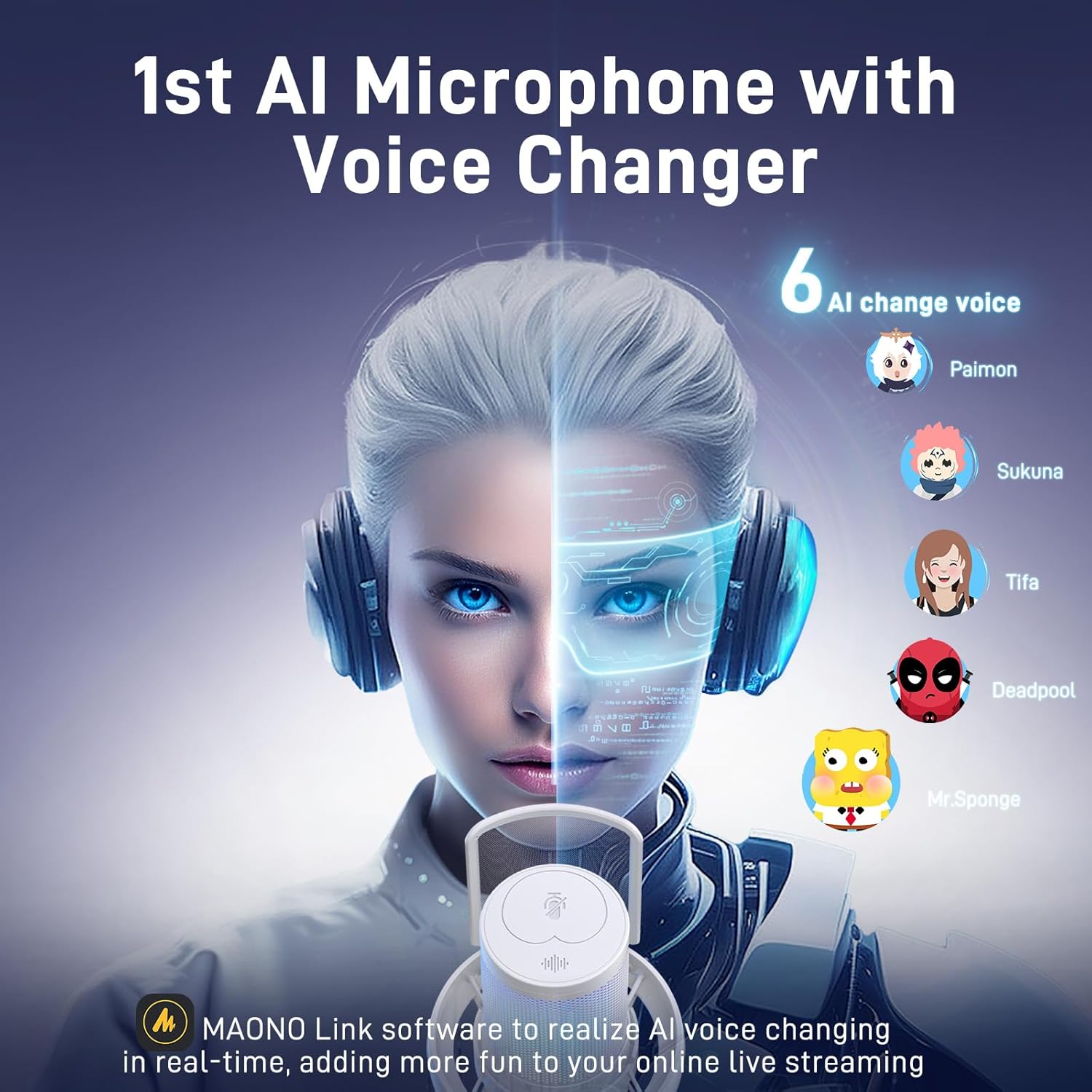 - Special Feature : 3-Level Noise Reduction, Battery Indicator Light,40H Long Battery Life, MAONO Link Software, AI Voice Changer, Adjustable RGB, One-tap Mute, Gain Knob, 3.5mm Headphone Jack, Volume Control, Custom EQ, Scene Presets, Mute Function, Wireless Connection,Plug and Play 3-Level Noise Reduction, Battery Indicator Light,40H Long Battery Life, MAONO Link Software, AI Voice Changer, Adjustable RGB, One-tap Mute, Gain Knob, 3.5mm Headph… See more