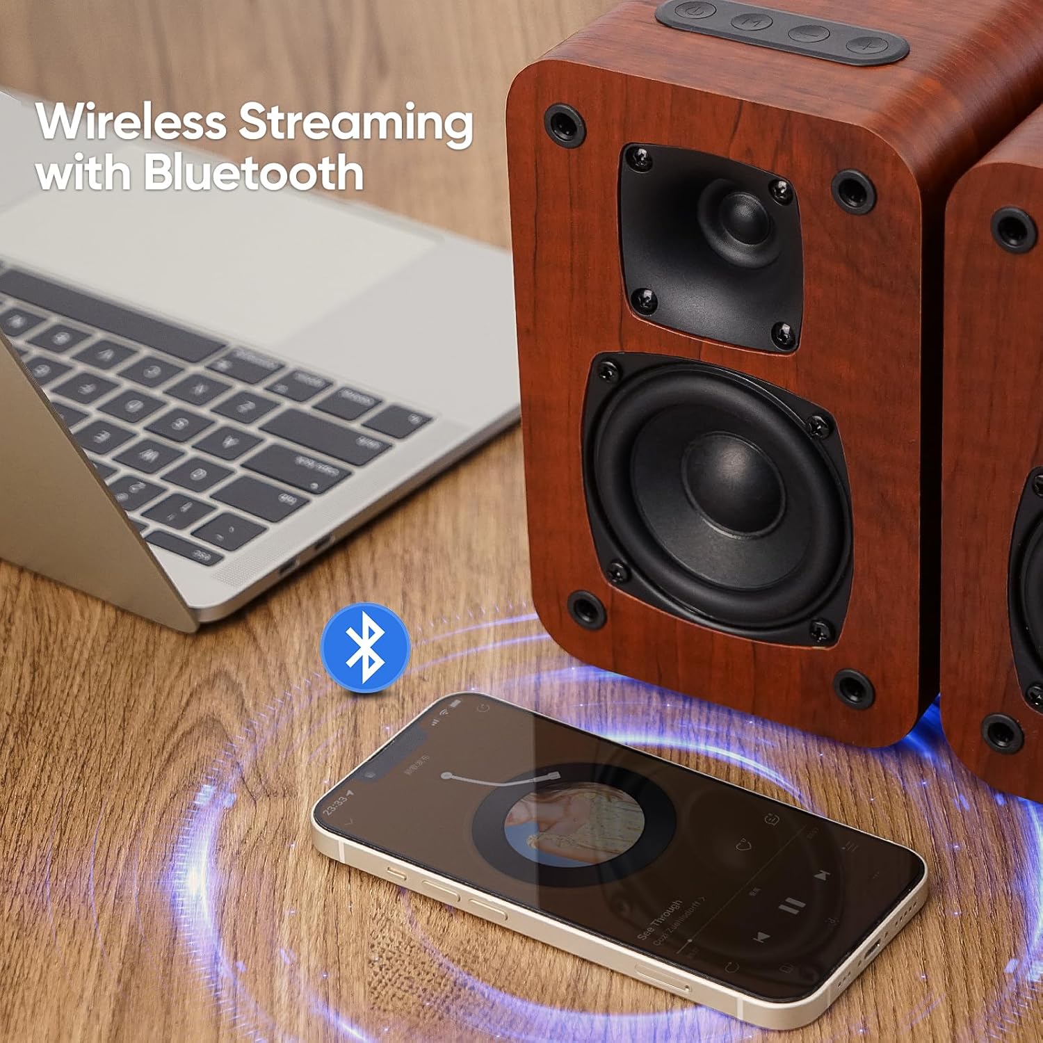 Saiyin Bluetooth Bookshelf Speakers for Record Player,Active Speakers with 3 Inch Woofer, Powered Speakers with Optical/AUX/TV-ARC Input for Turntable, PC and TV