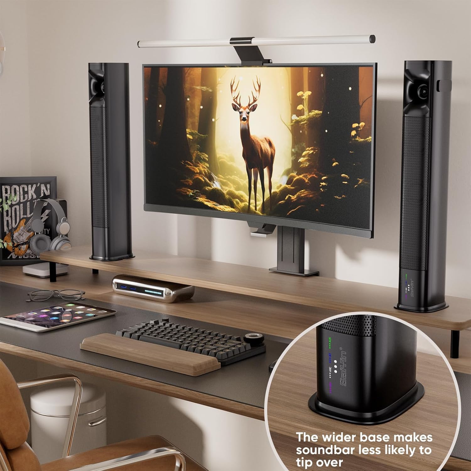 - Flexible Design and Placement:Measuring a total of 31 inches, this TV sound bar features a detachable design that saves space and facilitates easy installation. The widened base provides added stability, ensuring the speaker remains securely in place
