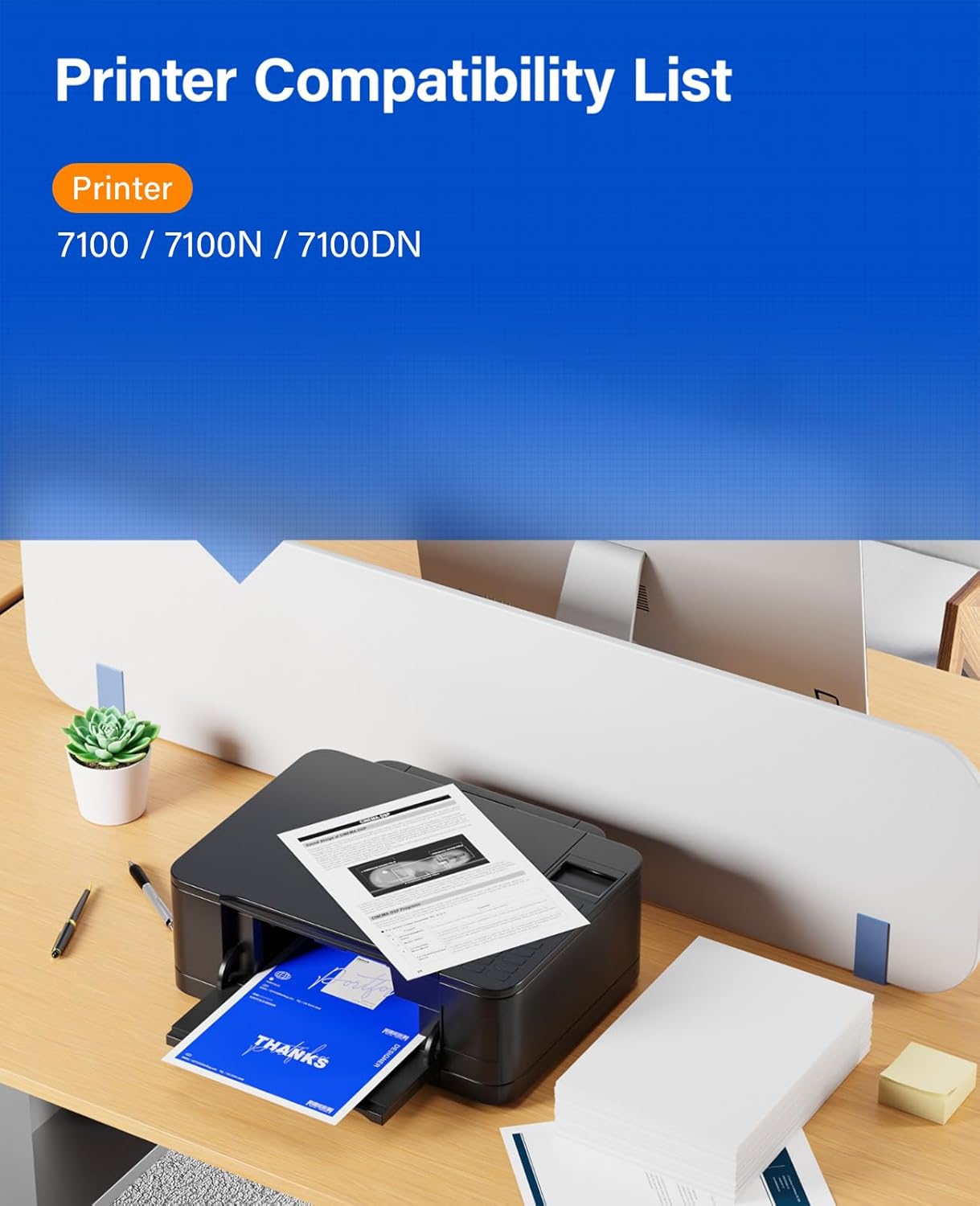 - What You Get: 4-Pack of 7100 Black/Yellow/Magenta/Cyan Toner Cartridge