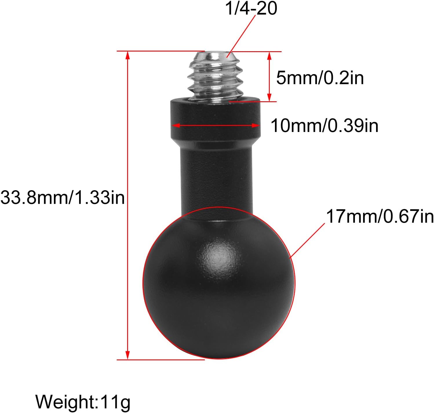 - Overall length: 33.8mm/1.33in, 1/4 stainless steel screw length: 5mm/0.2in, ball diameter 17mm/0.67in