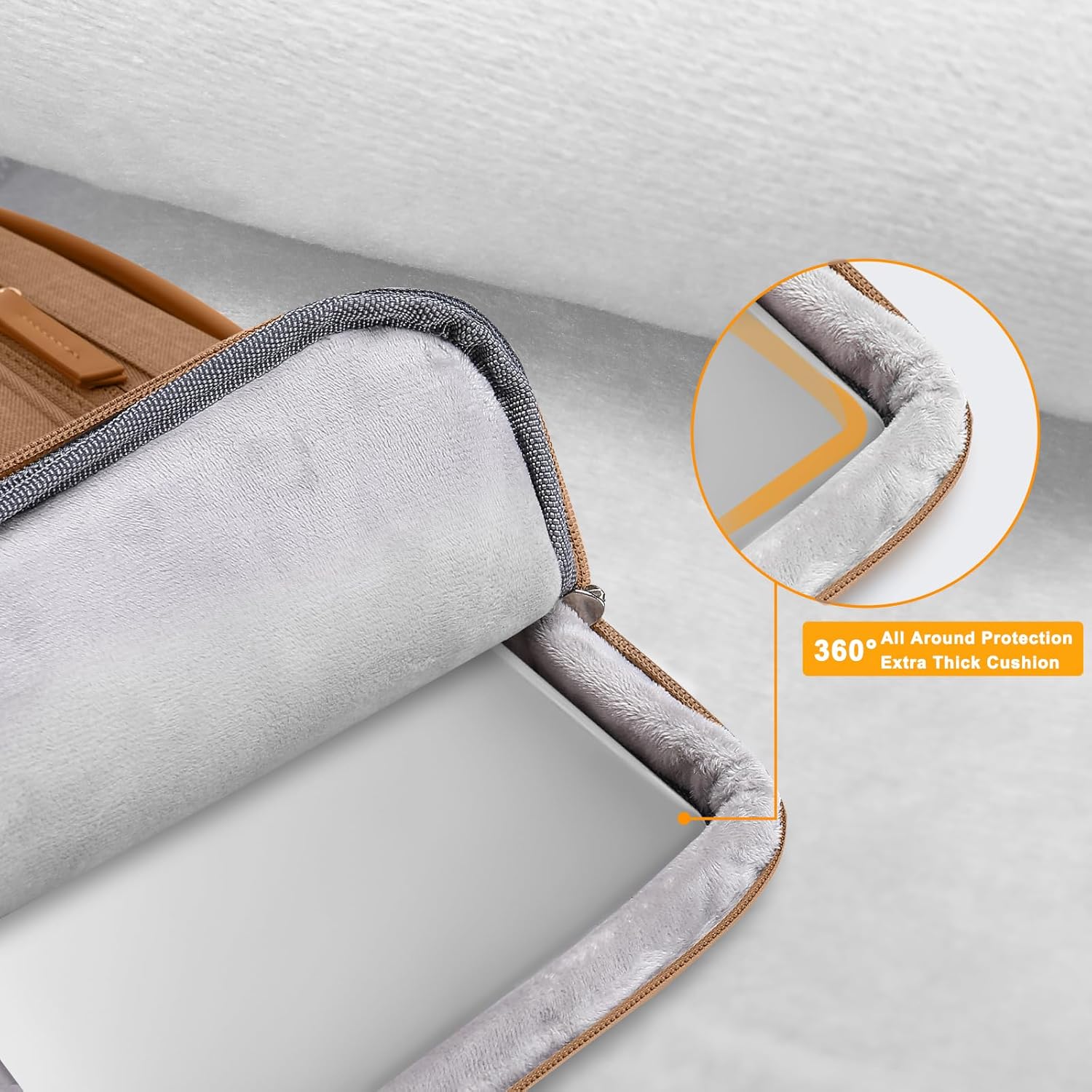 - 360 degree all around protective reinforced interior edge protect your laptop from any accidental dropping. Features foam padding layer and fluffy fleece fabric lining for bump and shock absorption and protection of your computer from accidental scratches. Side opening double zippers on the bag glide smoothly and allows convenient access to your laptop computer.
