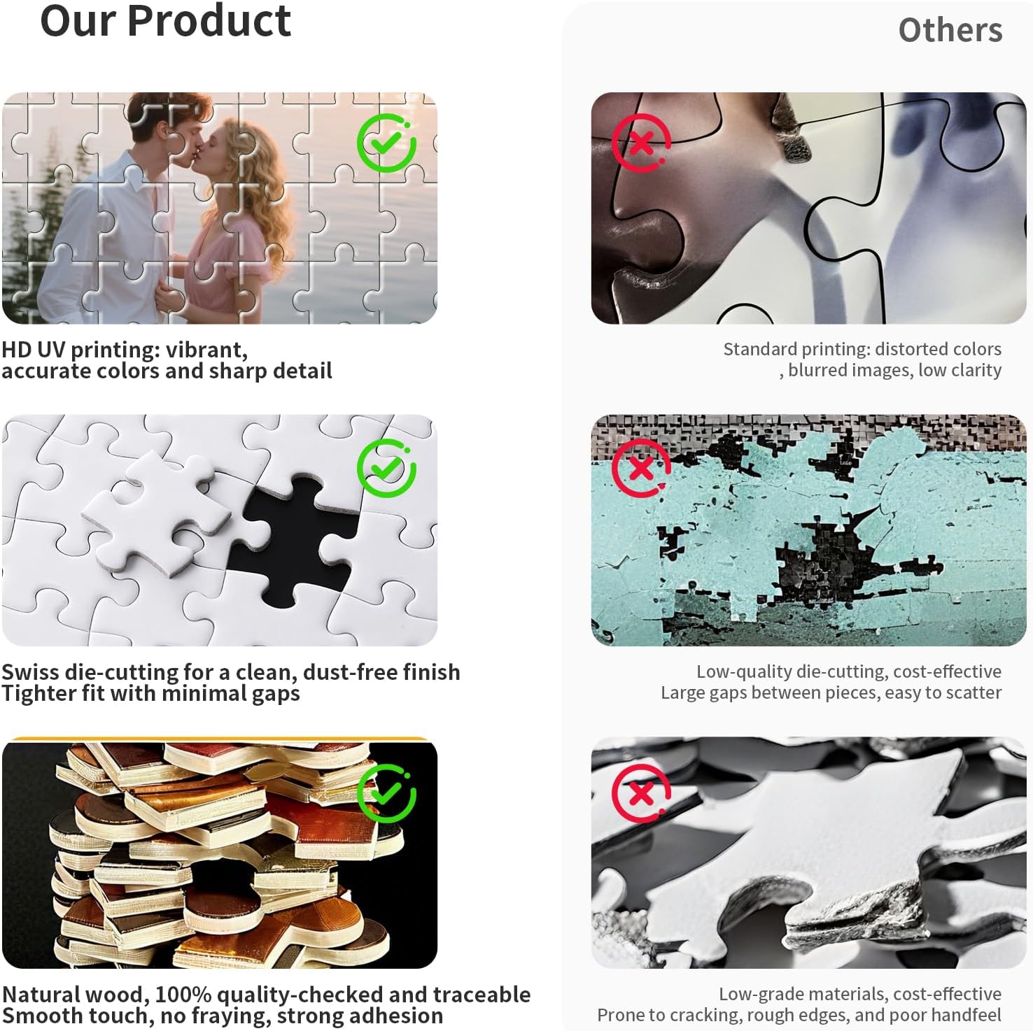 - ✅ Premium Print & Puzzle Quality – Crafted with vibrant, true‑to‑life colors and crisp detail on sturdy, precision‑cut pieces for a perfect fit every time. Our personalized puzzles for adults are built to last, offering both a relaxing challenge and a meaningful way to preserve your favorite memories—while enjoying screen‑free, hands‑on fun.