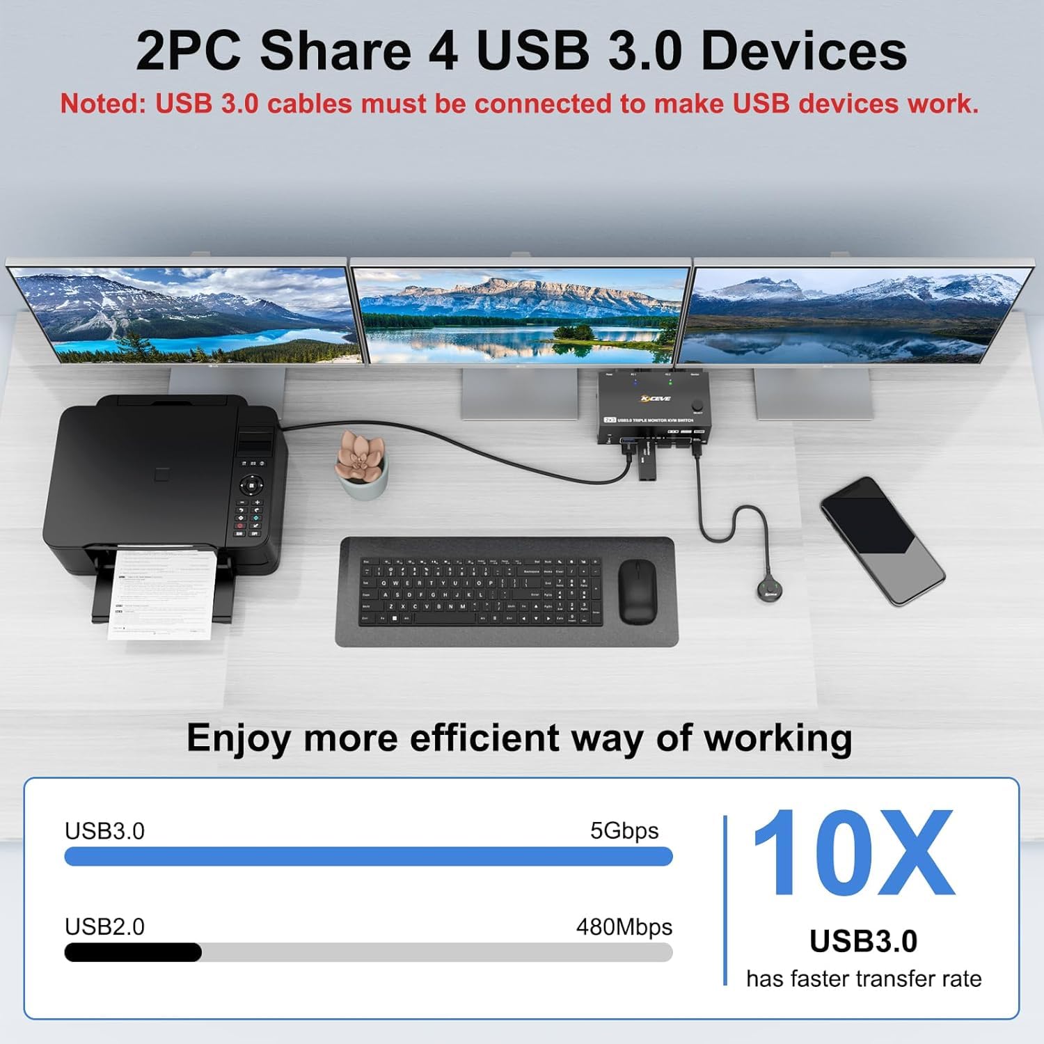 - 【You can get】1x Triple Monitor KVM Switch, 2x USB 3.0 Cable, 1x Power Adapter, 1x Wired remote, 1x User's manual. If you have any questions about the 3 monitots kvm switch, please contact us.