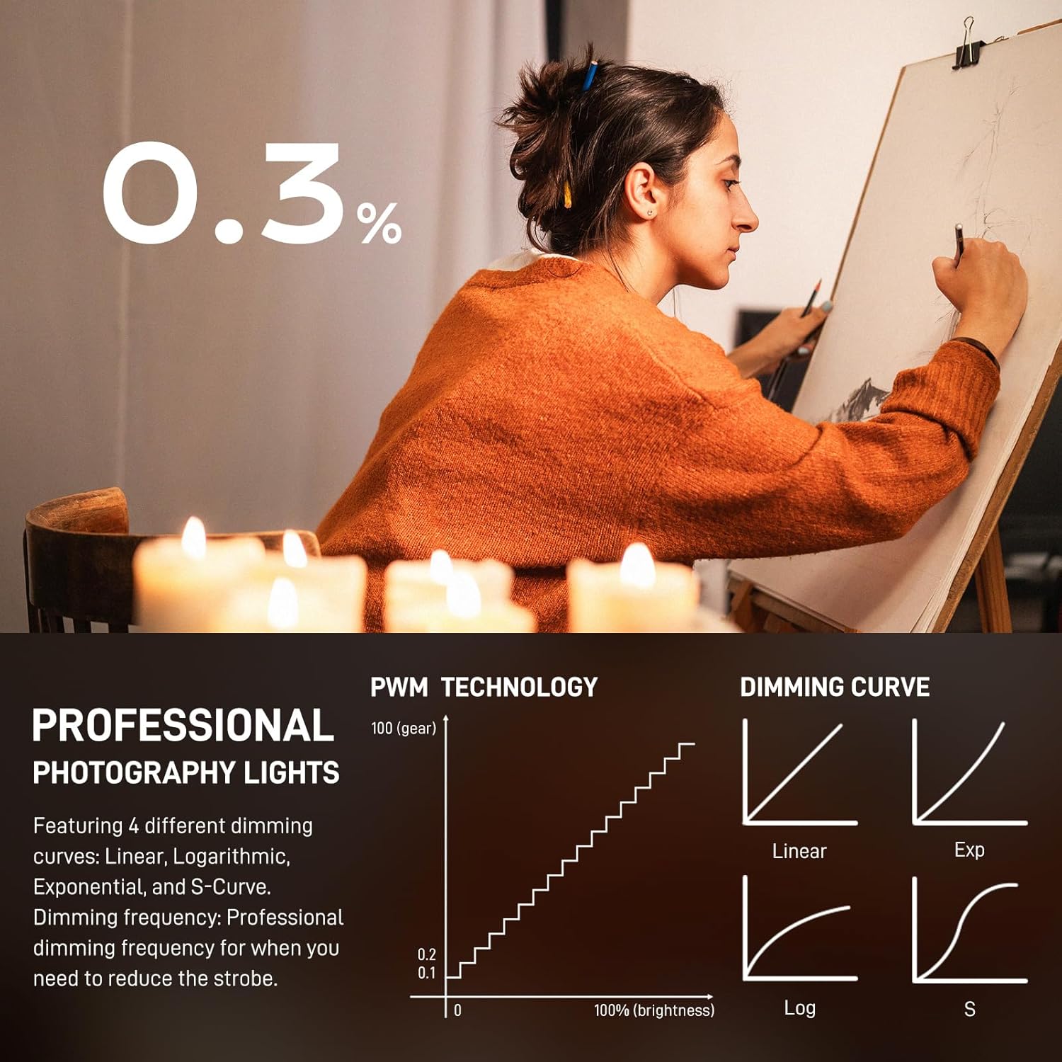 - VERSATILE DMX512 INTEGRATION & CONTROL MODES:Integrated control system with onboard interface, Bluetooth app, DMX512A, RDM, and USB-C connectivity,Features a standard DMX512 interface with 8-bit/16-bit precision and RDM support, catering to professional studio setups and complex lighting configurations.