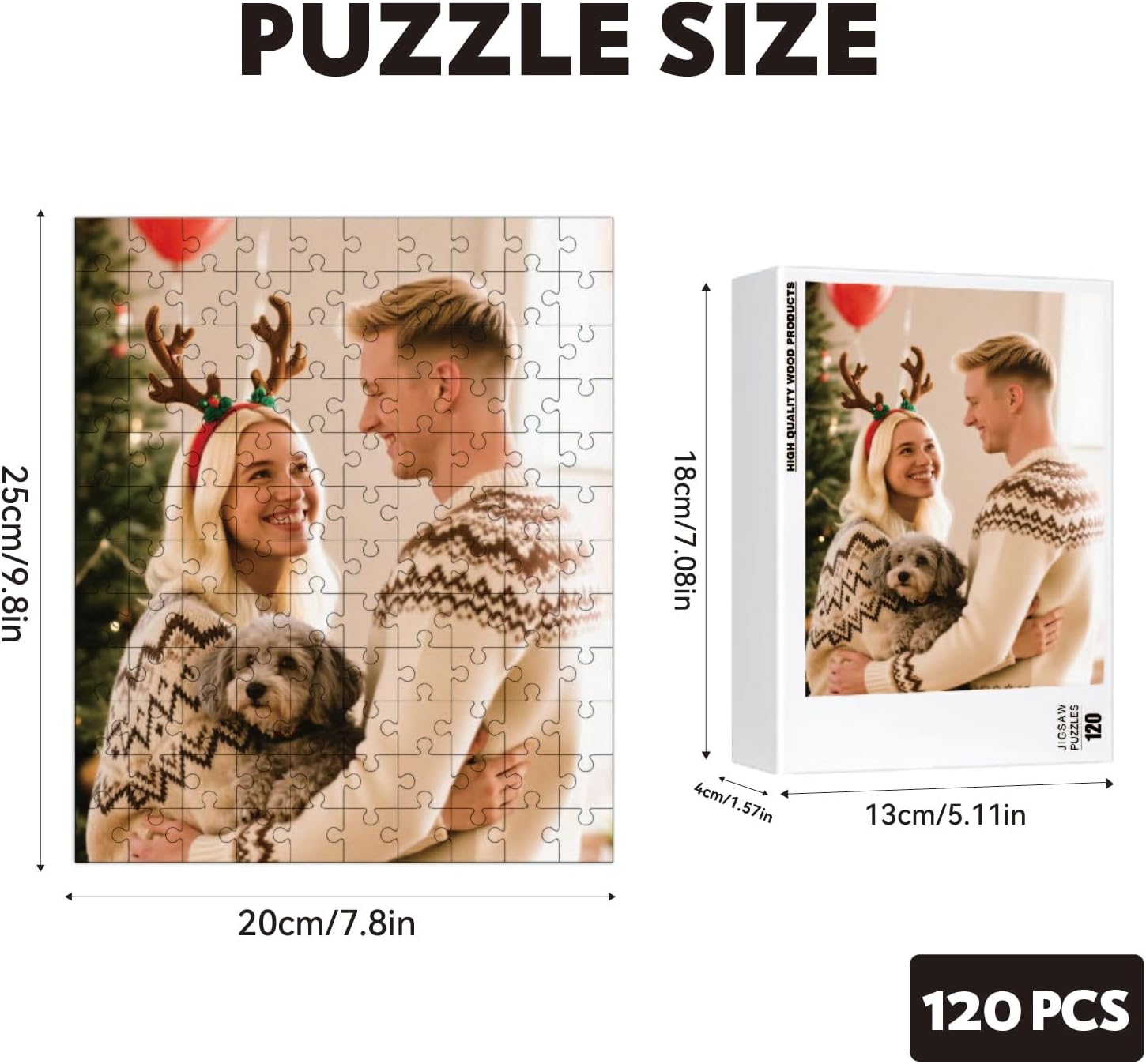 Custom Puzzle, Customize Puzzles from Photos with 120/200/300/500/1000 Pieces, Personalized Wooden Jigsaw Puzzle Gifts for Family, Adults, Christmas, Wedding, Pet