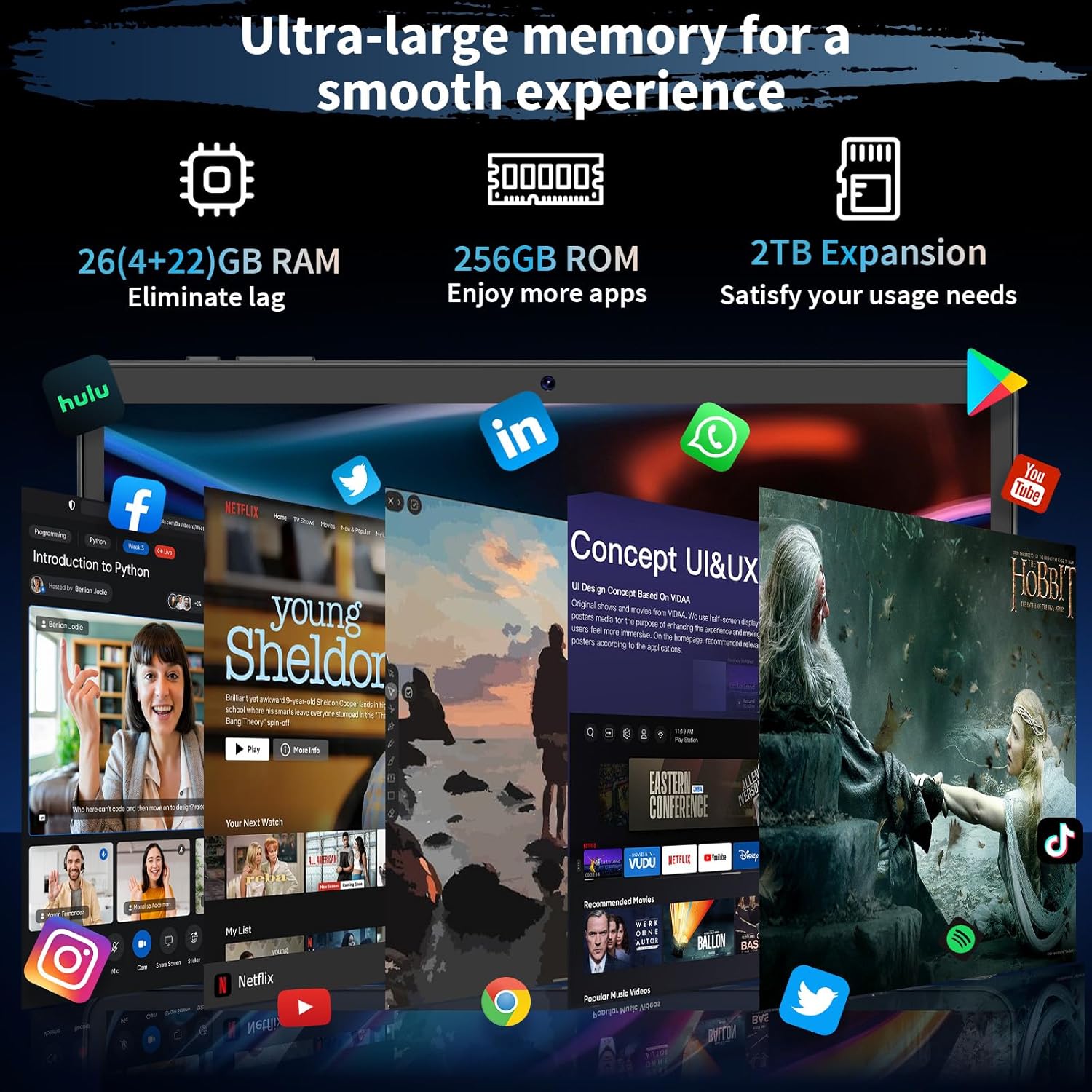 - 【Powerful Audio and Photography Experience】 This 2-in-1 tablet enjoys immersive sound quality through dual speakers, 13 MP rear cameras and 8 MP front camera, perfect for capturing memories, video calls and online meetings.