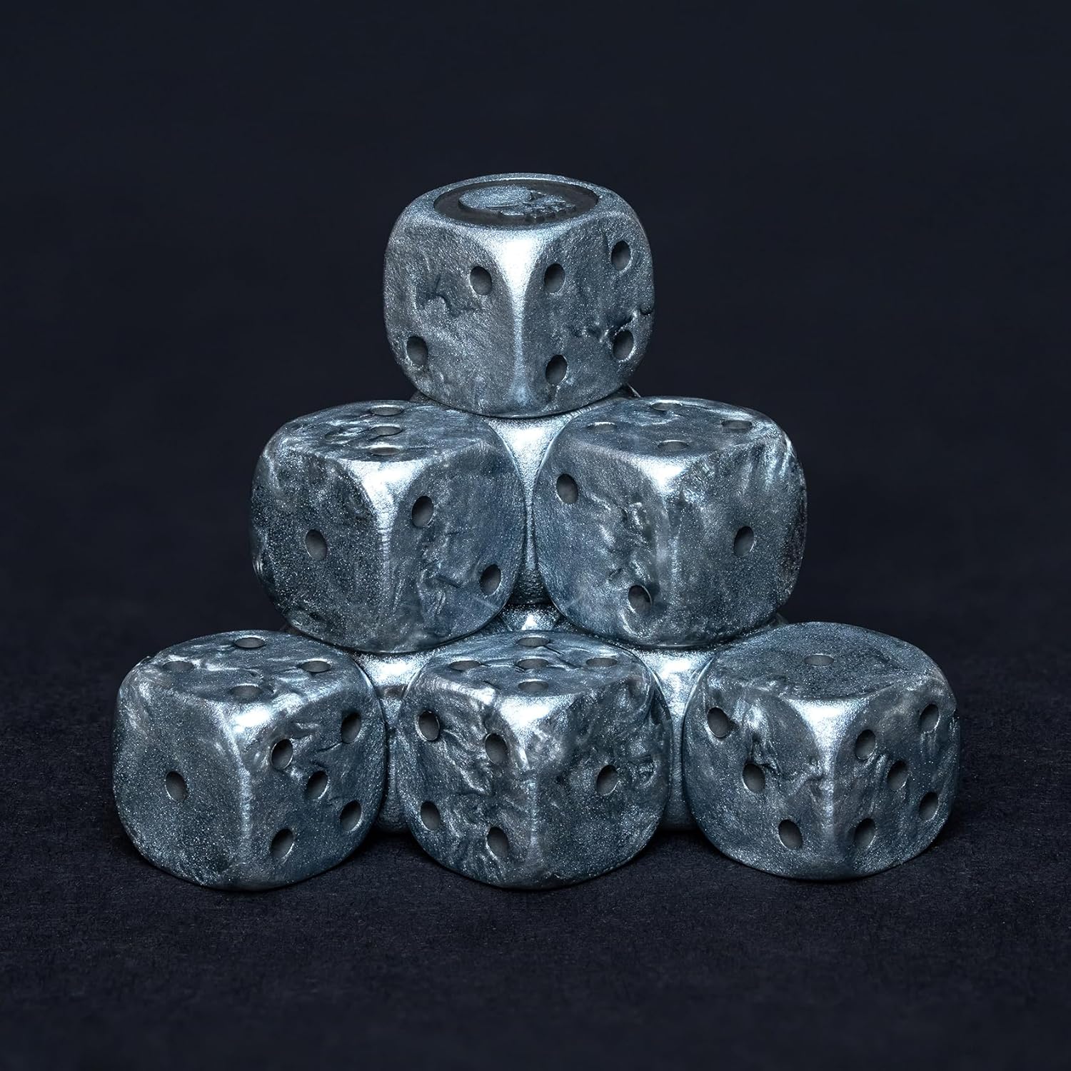 - π€ Metallic Finish with Dark-Core Pips With a killer silver-graphite blend and dark matte engraved pips, these dice scream grim battlefields. The metallic swirls feel like theyβve been pulled straight out of a warpstorm.