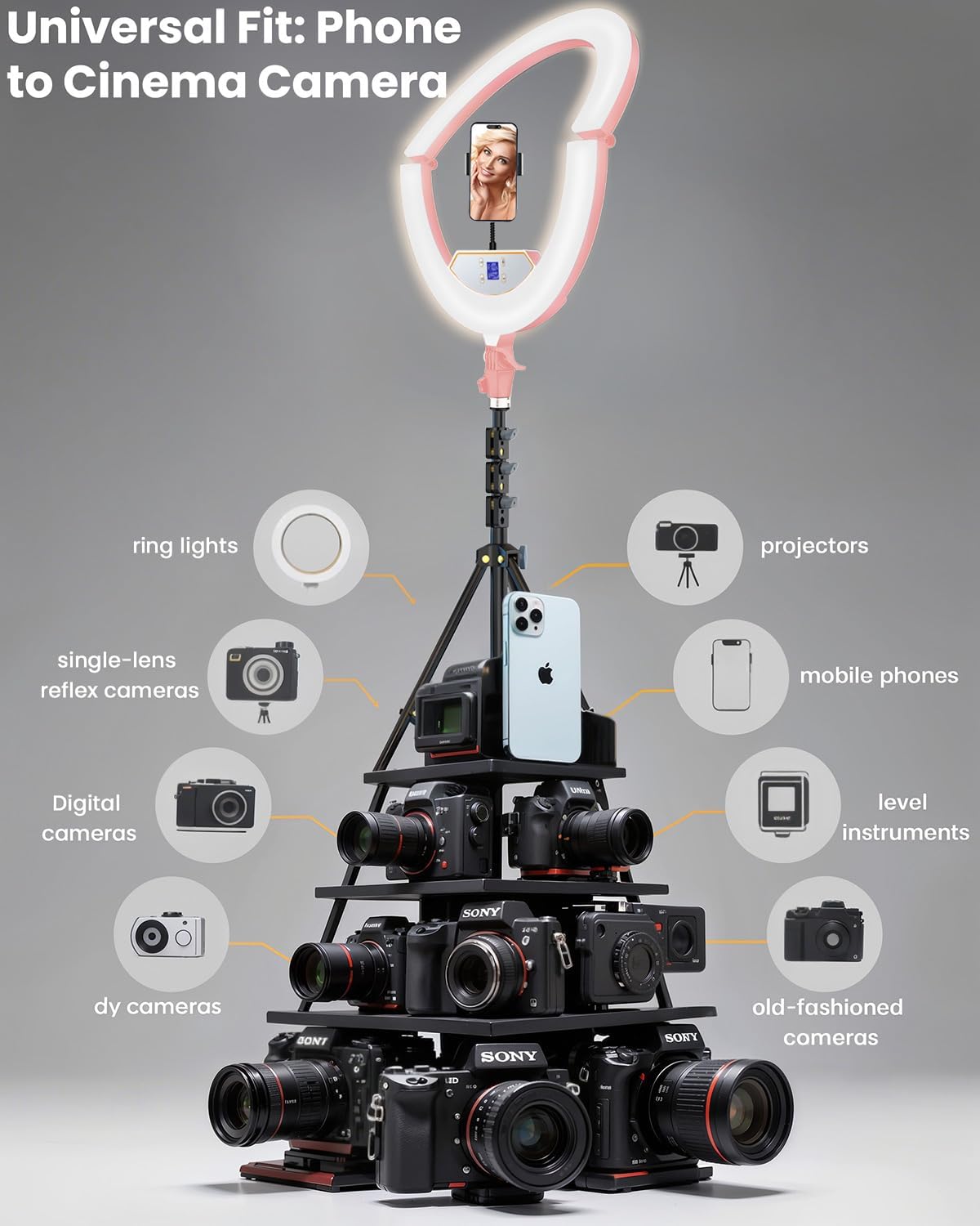 - 【Pro Creator Kit Includes & Brand Service】Package includes: 22” LED Ringlight*1, 75-inch[210cm] Tripod*1,Phone Holder*2 & Super Phone Holder*1 for multi-angle shooting, Soft Tube*1,Ball Head*2, Bluetooth Shutter*1,Remote Controller*1 for hands-free selfies,Power Cord*1,Carry Bag*1. We've got your back with a 1-year replacement and Brand after-sales support. If any issues, just hit us up via the "Contact Seller" button in your orders, and we'll sort you out within 24 hours.