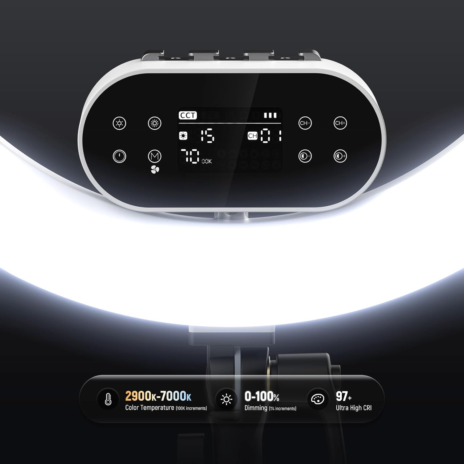 - 【CCT & FX Scene Effect Modes】 The CCT mode provides a 2900K-7000K adjustable range for warm to cool tones, along with 0-100% dimming to suit various lighting needs and CRI97+ a high color accuracy. The flexible lighting adjustment can flatter all skin tones, brighten your face, and minimize blemishes. The FX Mode brings 12 realistic scene effects for professional video shooting. Use the wired controller to quickly get the effects you want