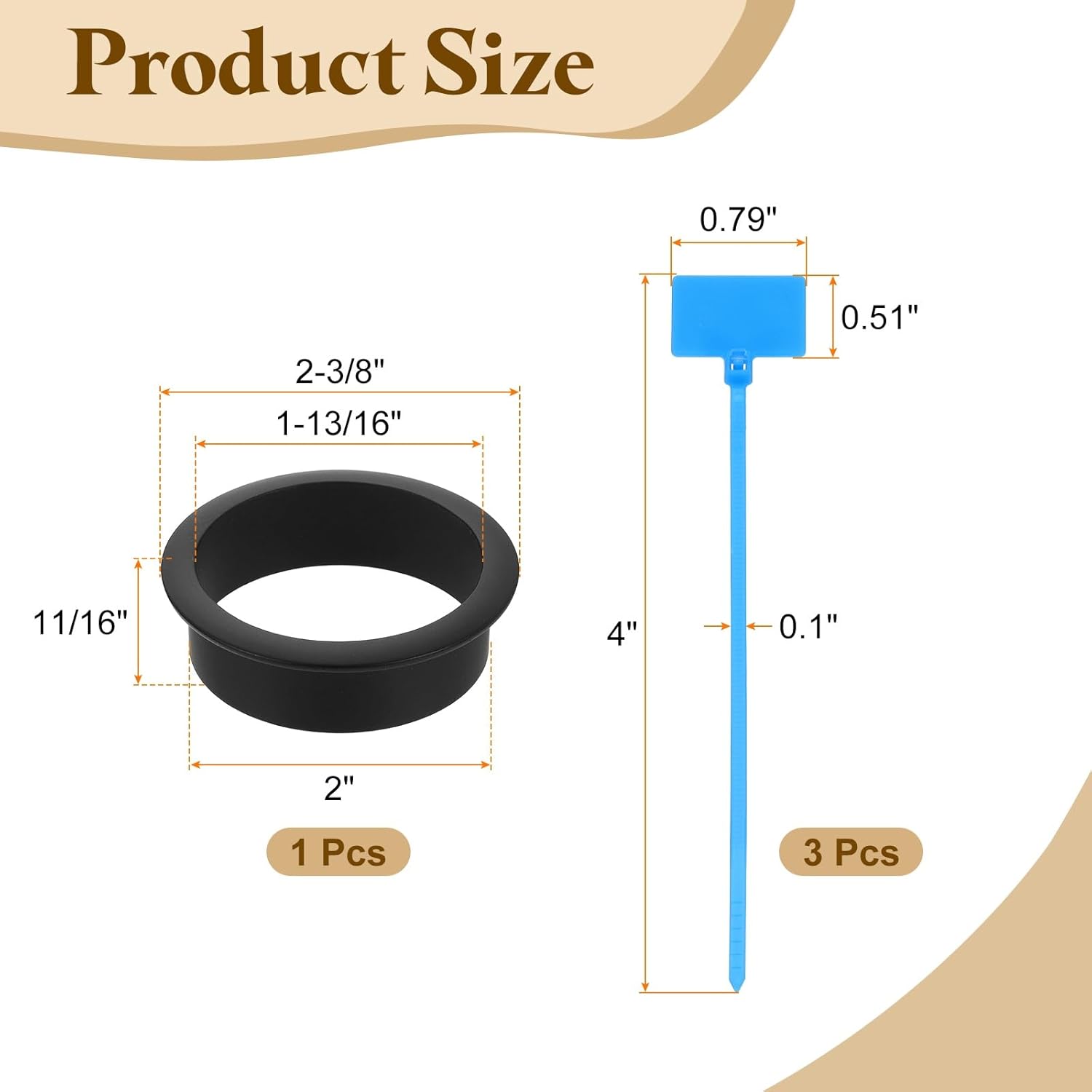 - Size & Package: This grommet fits a hole of 50mm/ 2 inch diameter, the inner diameter is 46mm/ 1-13/16 inch, the outer diameter is 60mm/2-3/8 inch, and the height is 17mm/11/16 inch. You will receive 1ps grommets and 3ps marked cable ties