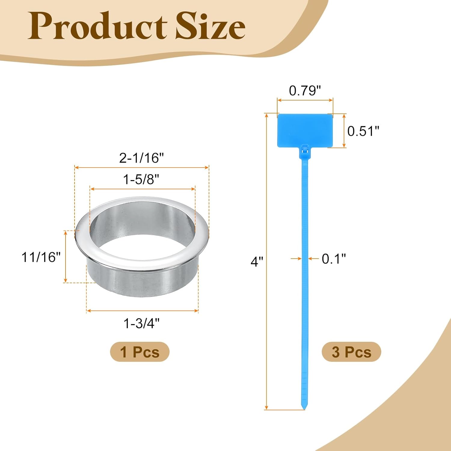 - Size & Package: This grommet fits a hole of 45mm/ 1-3/4 inch diameter, the inner diameter is 41mm/ 1-5/8 inch, the outer diameter is 53mm/2-1/16 inch, and the height is 17mm/11/16 inch. You will receive 1ps grommets and 3ps marked cable ties