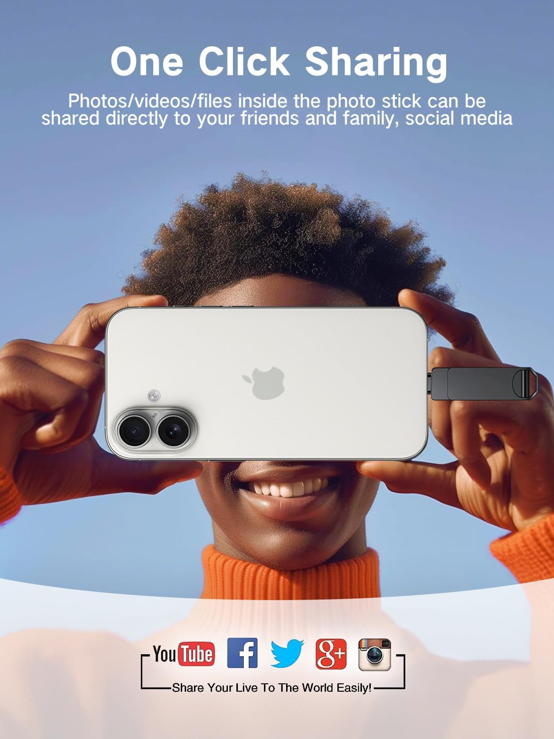 - 【Plug and Play, Expand iPhone and iPad Storage Instantly, No App Needed】Running out of space on your iPhone or iPad? This 512GB photo stick offers immediate storage relief. Ideal for travel photographers editing on iPads, it eliminates storage worries across all your devices. Just plug it in, no complex setup required!